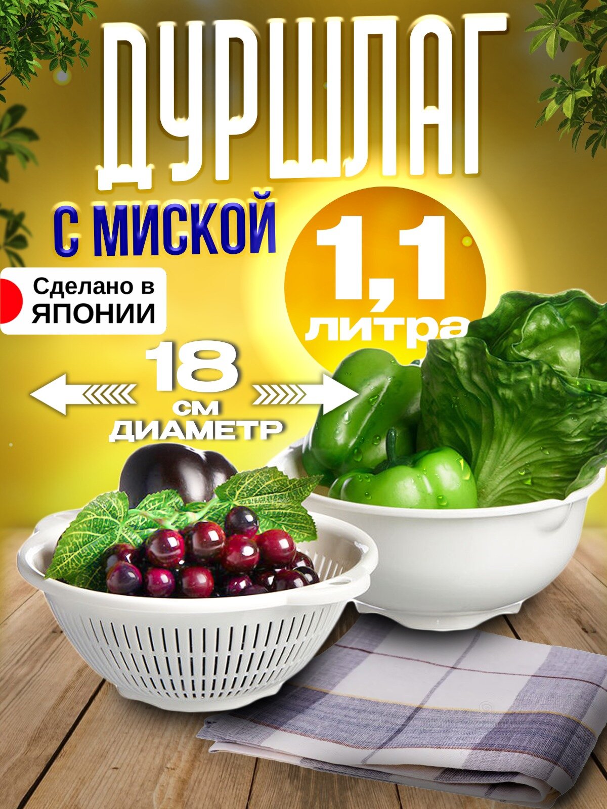 Миска для кухни и дуршлаг пластиковый набор 1,1 л 17,9*19,5*8,6 см интересное: