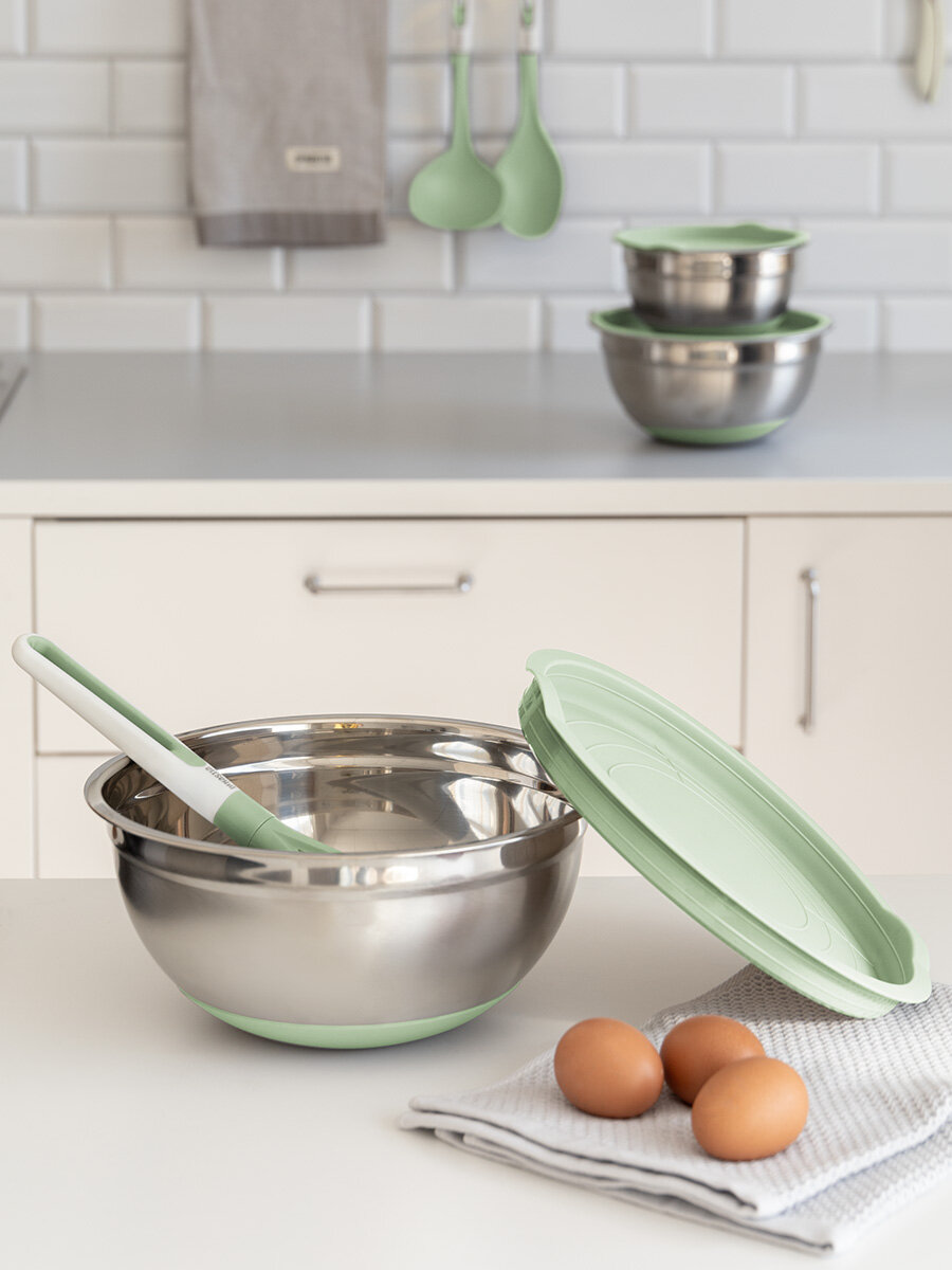 Купить Миска для смешивания продуктов с крышкой DeNASTIA силиконовое дно D26, цвет мятный A000237