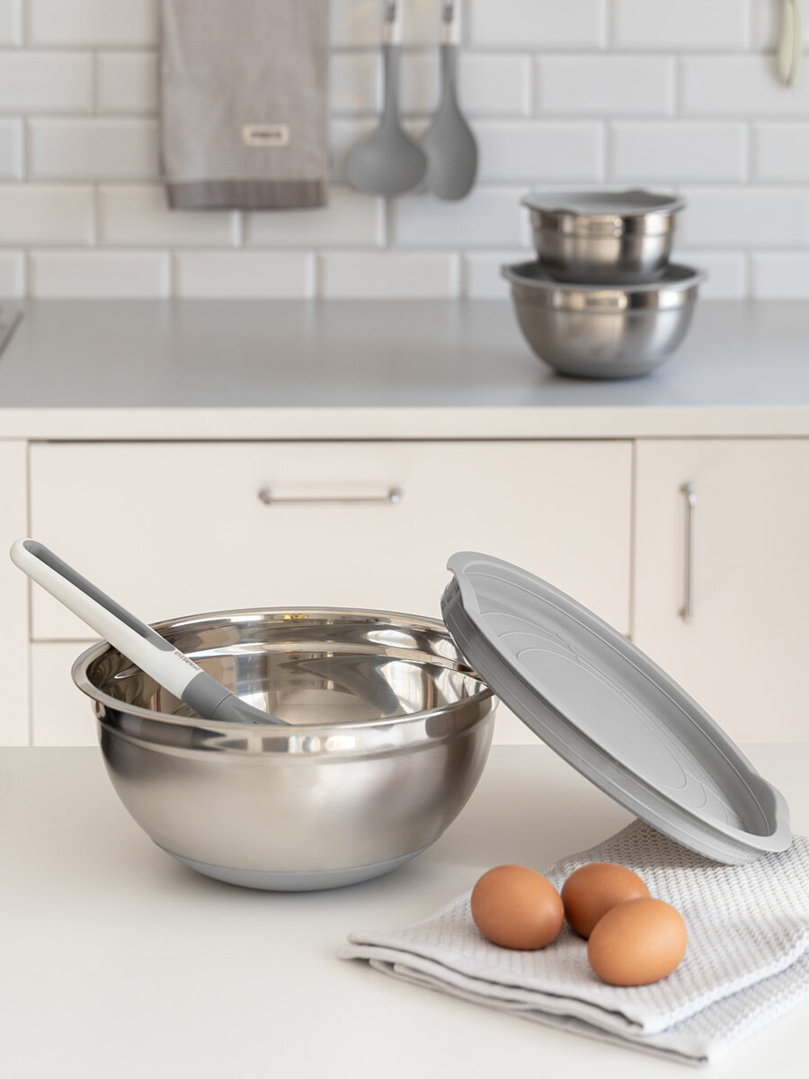 Купить Миска для смешивания продуктов с крышкой DeNASTIA силиконовое дно D26, цвет серый A000239