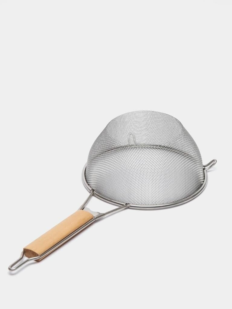 Сито дуршлаг металлическое с деревянной ручкой, диаметр 18 см.