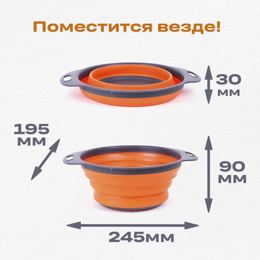 Дуршлаг складной силиконовый TAKARA NT1601 оранжевый 2,5л, 19,5 см, сито с ручками для круп, макарон овощей и фруктов интересное: