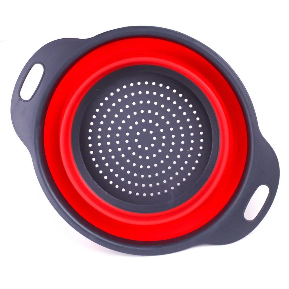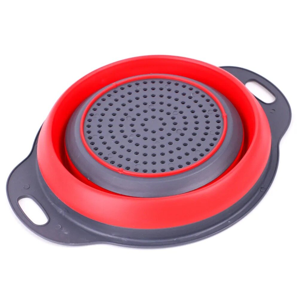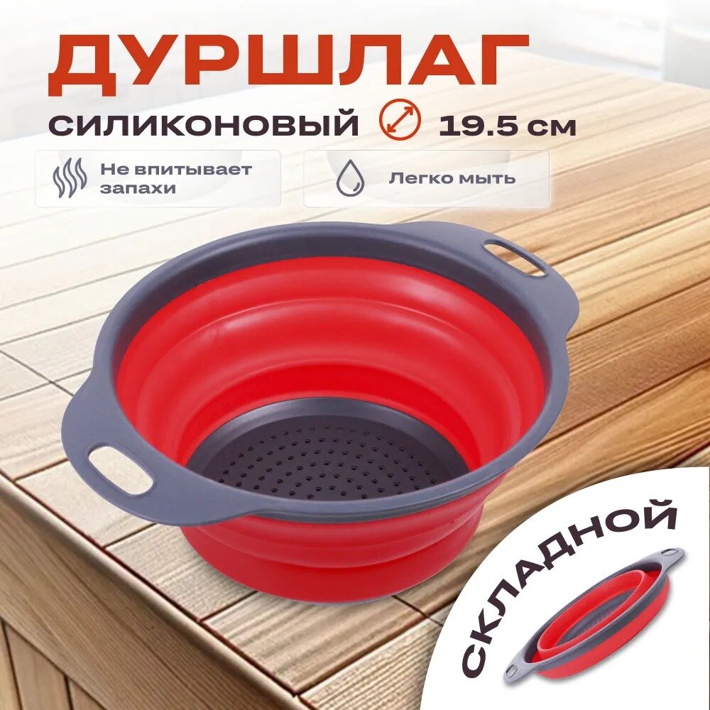 Дуршлаг складной силиконовый TAKARA NT1601 красный 2,5л, 19,5 см, сито с ручками для круп, макарон овощей и фруктов интересное: