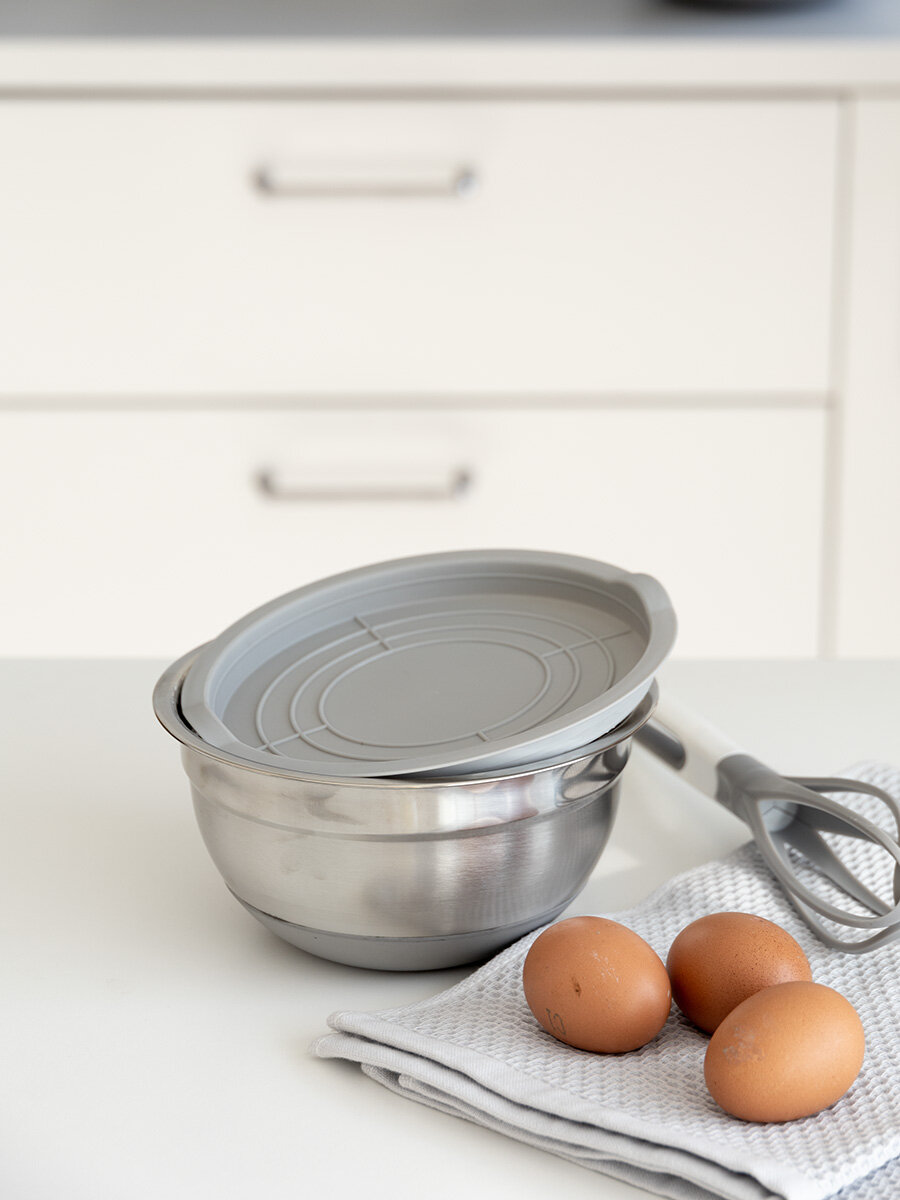 Миска для смешивания продуктов с крышкой DeNASTIA силиконовое дно D18, цвет серый A000233 интересное: