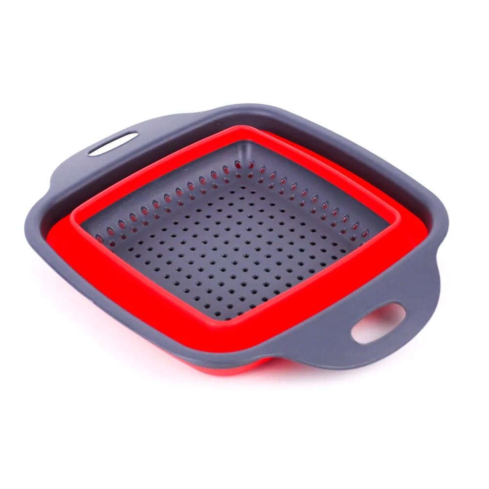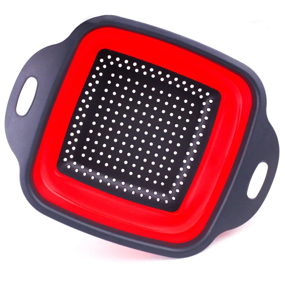 Дуршлаг складной силиконовый TAKARA NT1604 красный 3,5л, 21,5 см, сито с ручками для круп, макарон овощей и фруктов