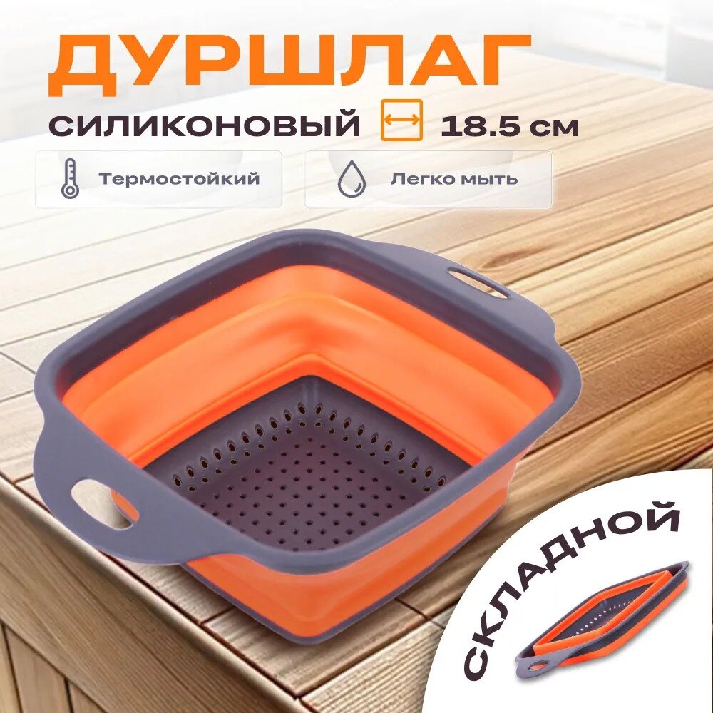 СохранитьДуршлаг складной силиконовый TAKARA NT1603 оранжевый 2л, 18,5 см, сито с ручками для круп, макарон овощей и фруктов интересное: