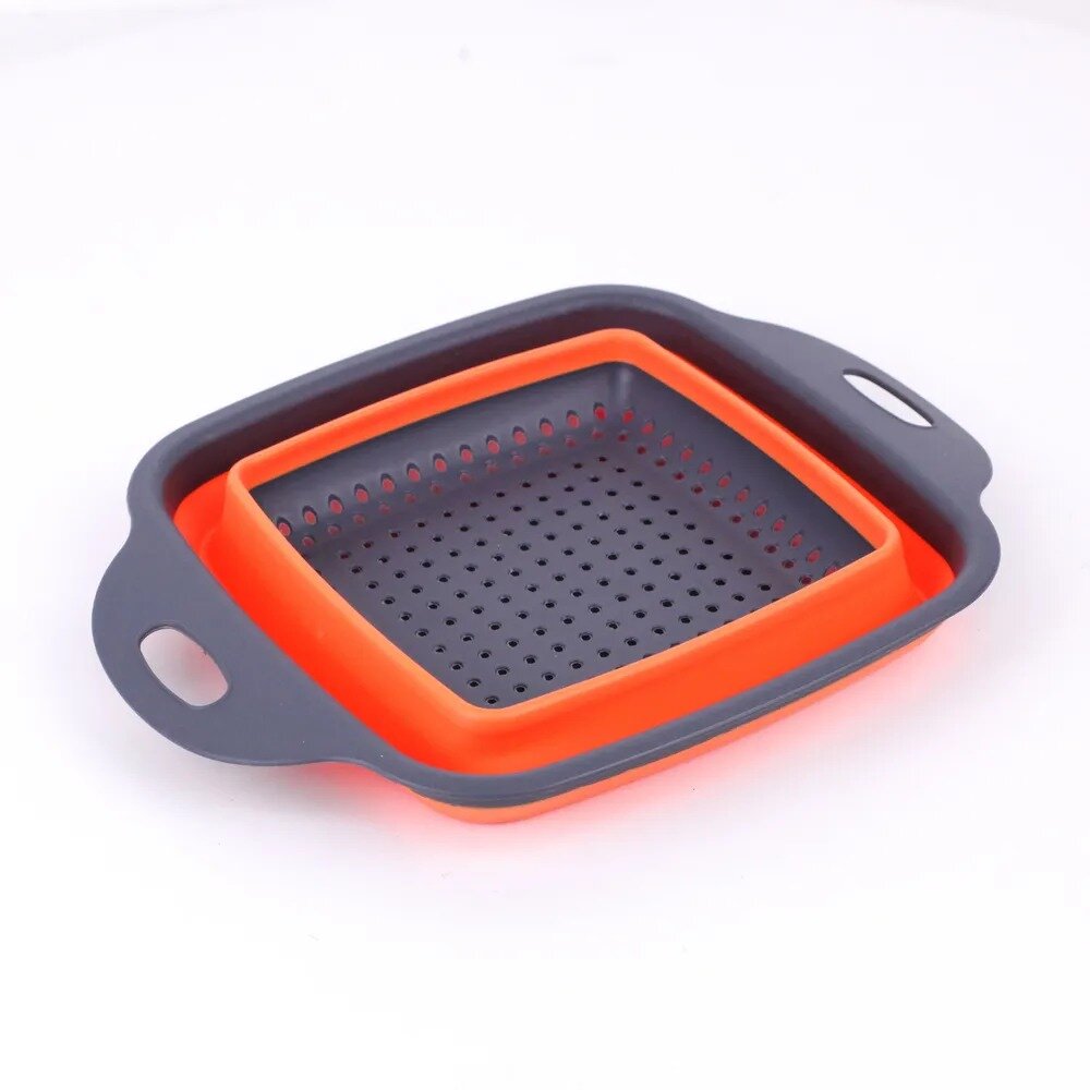 Дуршлаг складной силиконовый TAKARA NT1604 оранжевый 3,5л, 21,5 см, сито с ручками для круп, макарон овощей и фруктов