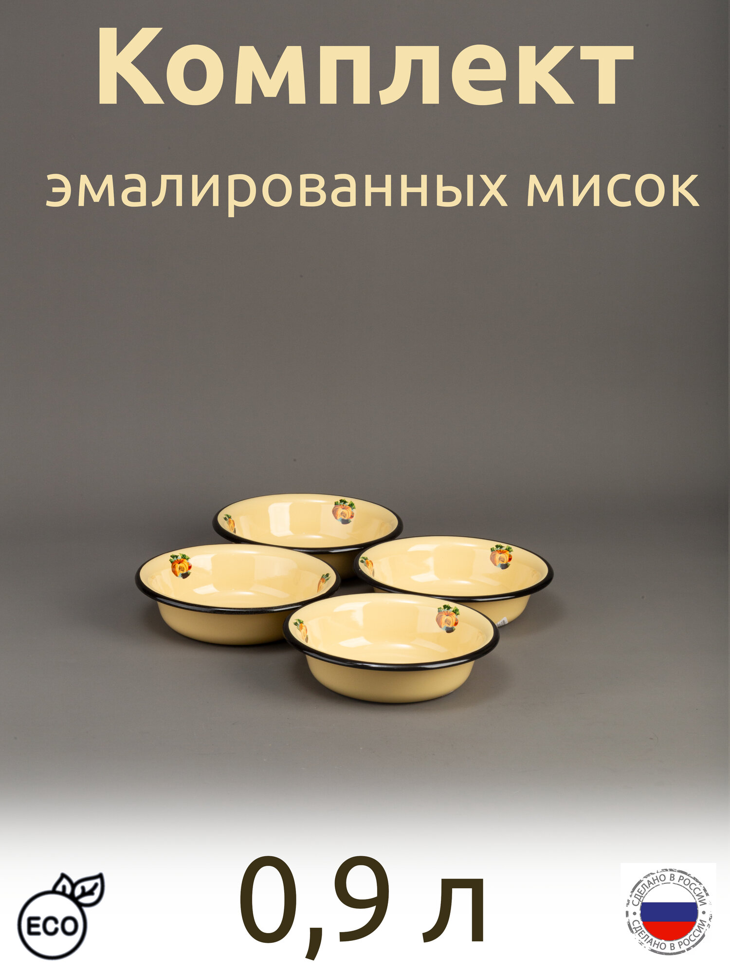 Миска эмалированная, салатник 0,9л с рисунком Тыковка, комплект 4 шт интересное: