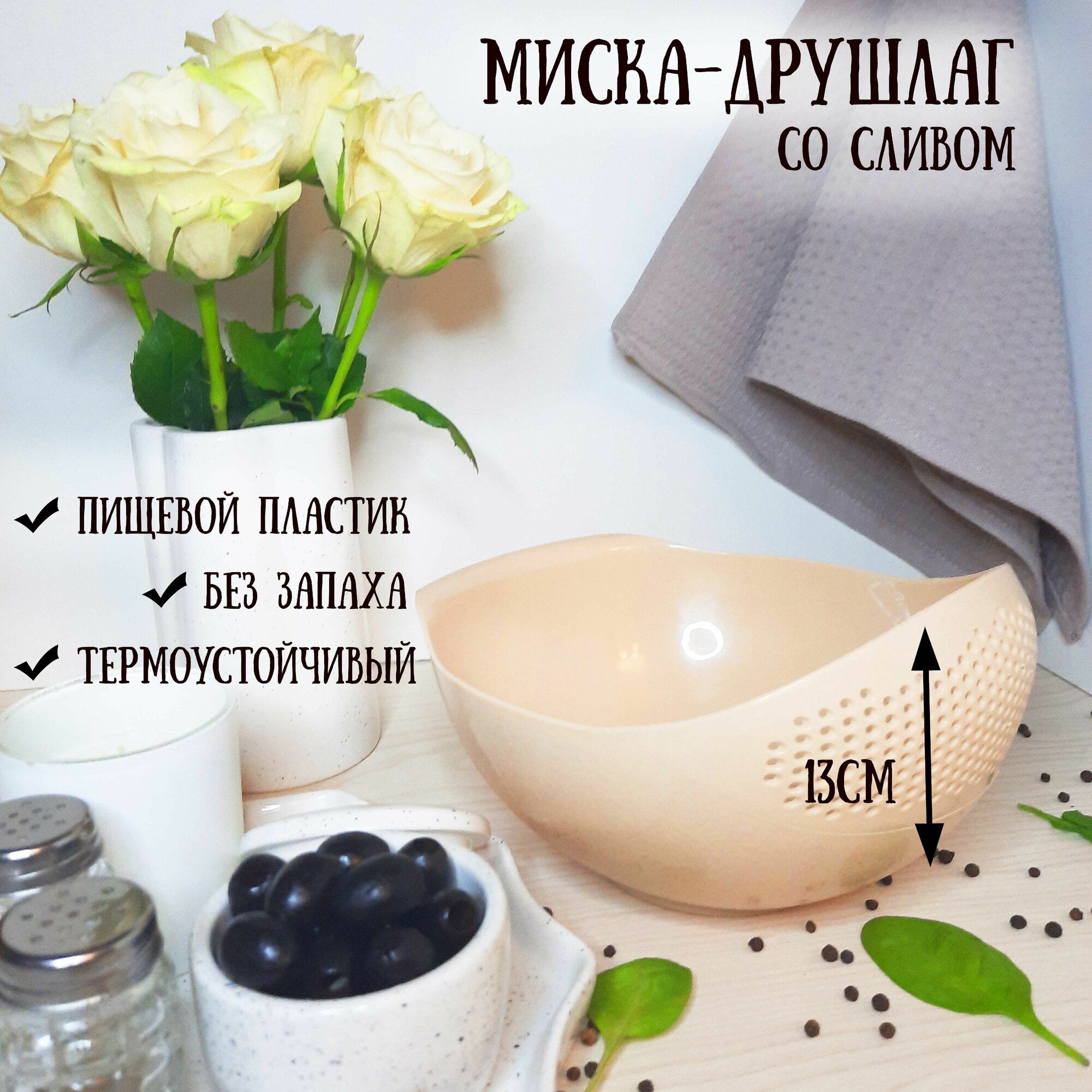 Миска-дуршлаг со сливом бежевый 2л интересное: