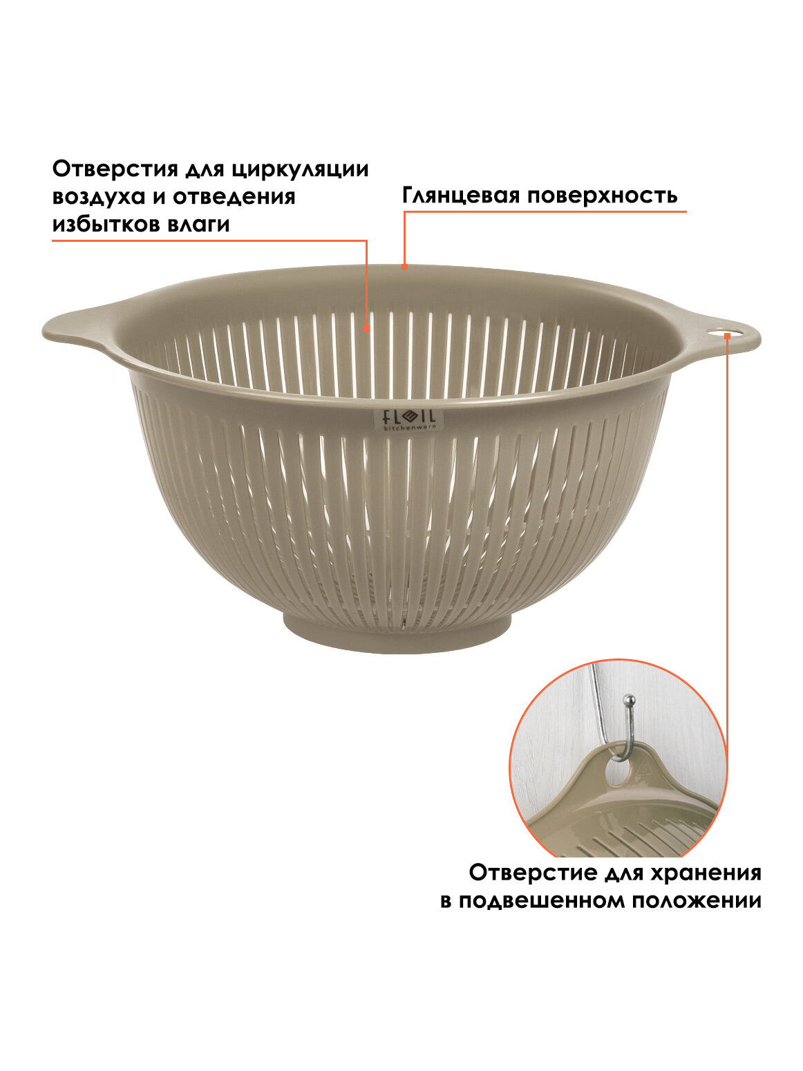 Дуршлаг пластиковый (L) 3,5 л, Д 25,5х30х13 см интересное: