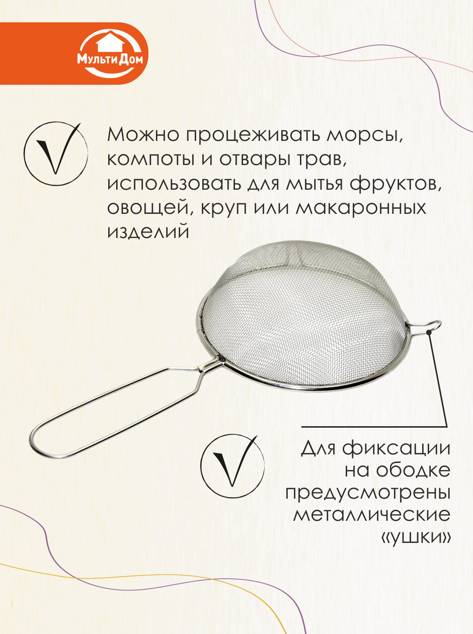 Сито с ручкой, нержавеющая сталь, подвесное, серебристое, диаметр 16 см. интересное: