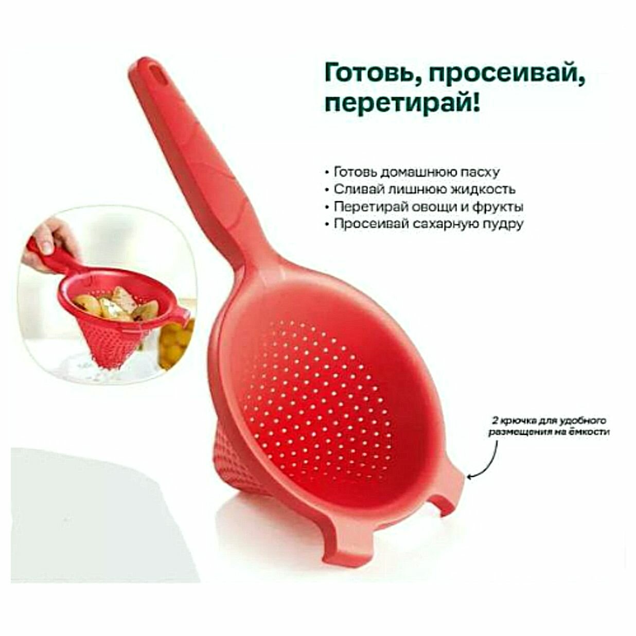 Tupperware Сито - дуршлаг универсальное "Шинуа" красный коралл интересное: