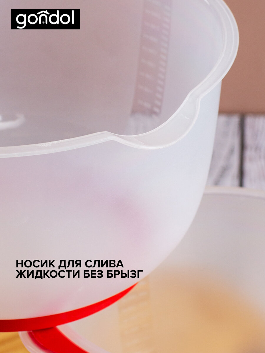 Набор мисок для смешивания Gondol 3шт 1.5л+2л+2.5л с антискользящим дном интересное: