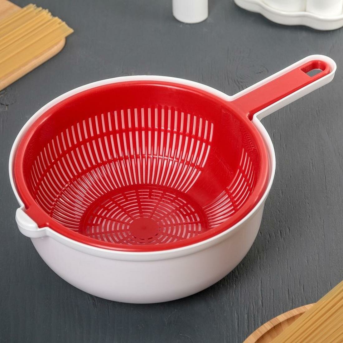 Дуршлаг с поддоном, d 25 см, пластиковый
