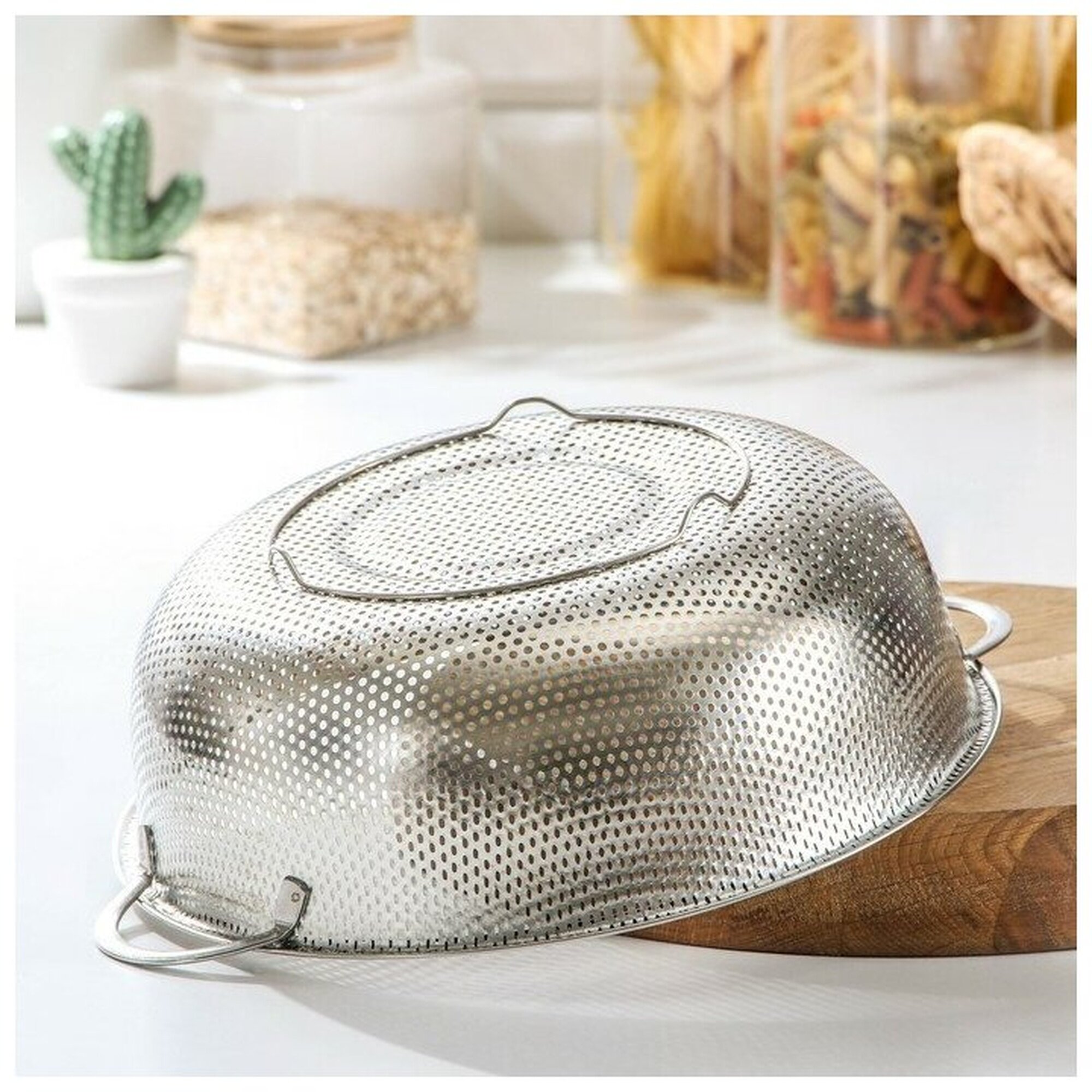 Дуршлаг с ручками, d 28 см, две ручки, цвет хромированный