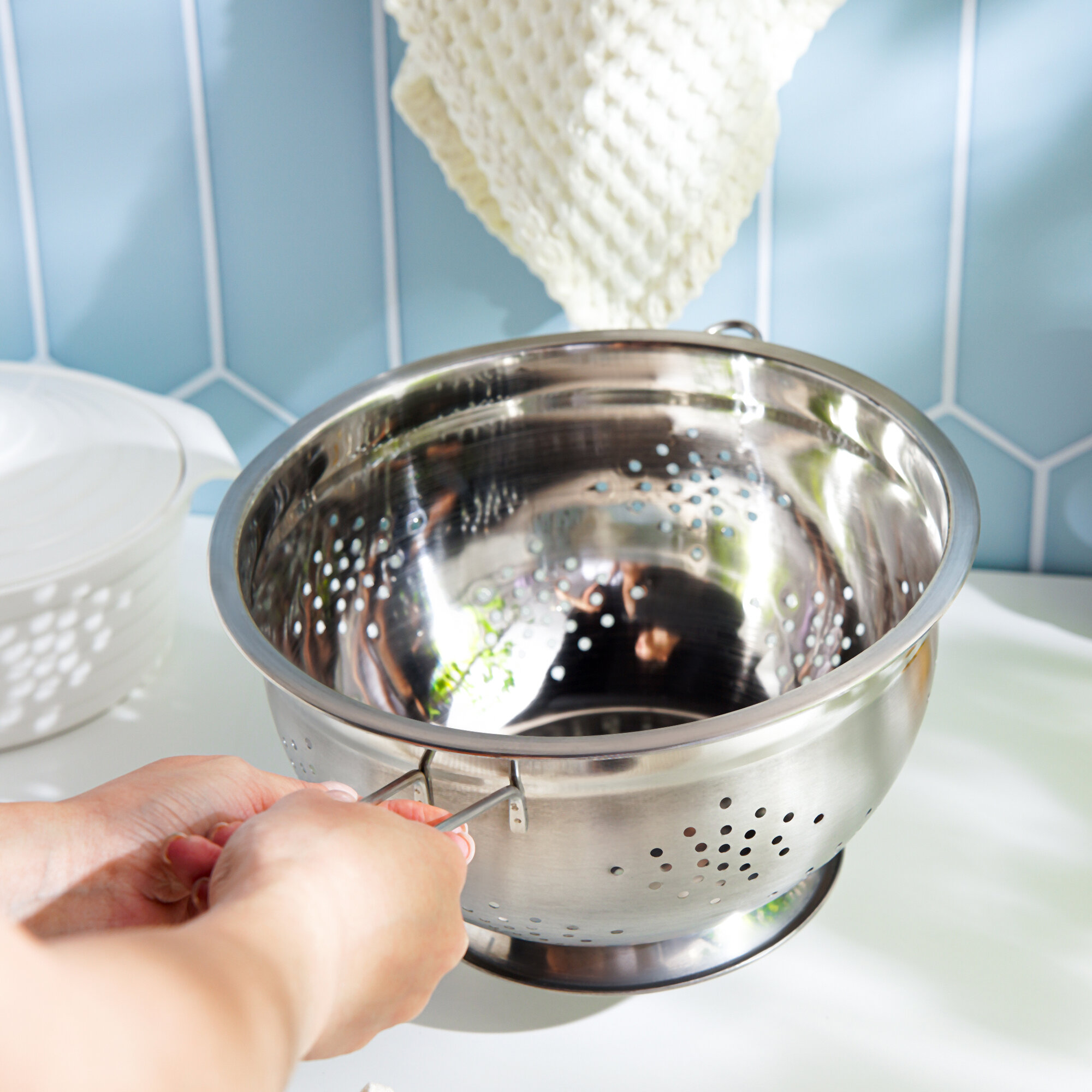 Дуршлаг с ручками, d 28 см, две ручки, цвет хромированный