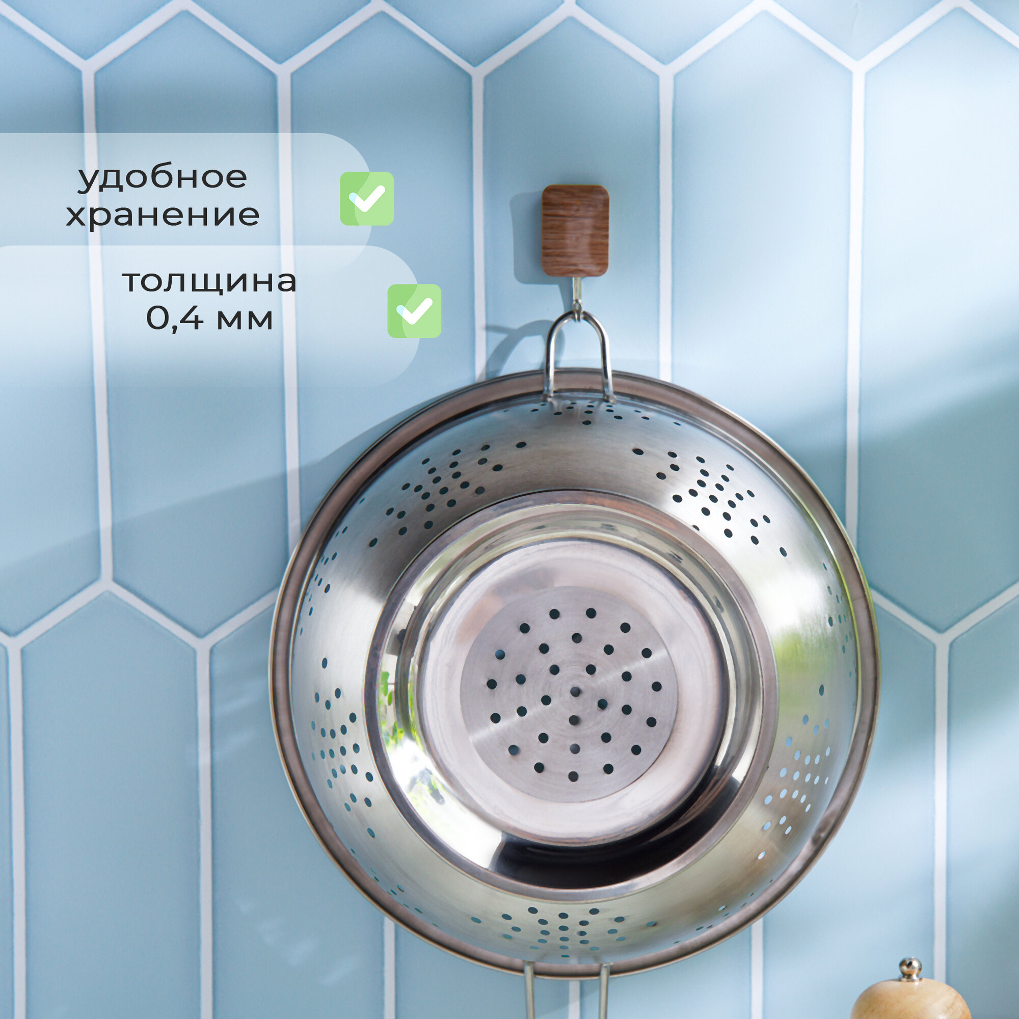 Дуршлаг, 2,5 л, d 20 см, толщина 0,3 мм, длинная ручка