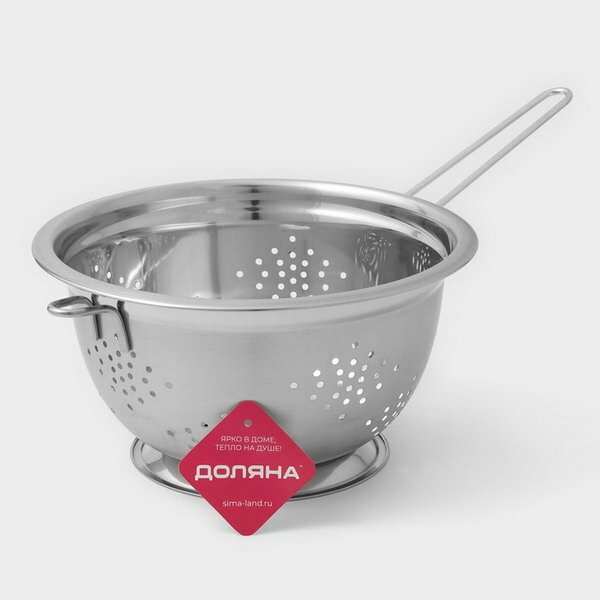 Дуршлаг из нержавеющей стали Доляна Индия , 1,3 л, d 20 см, длинная ручка