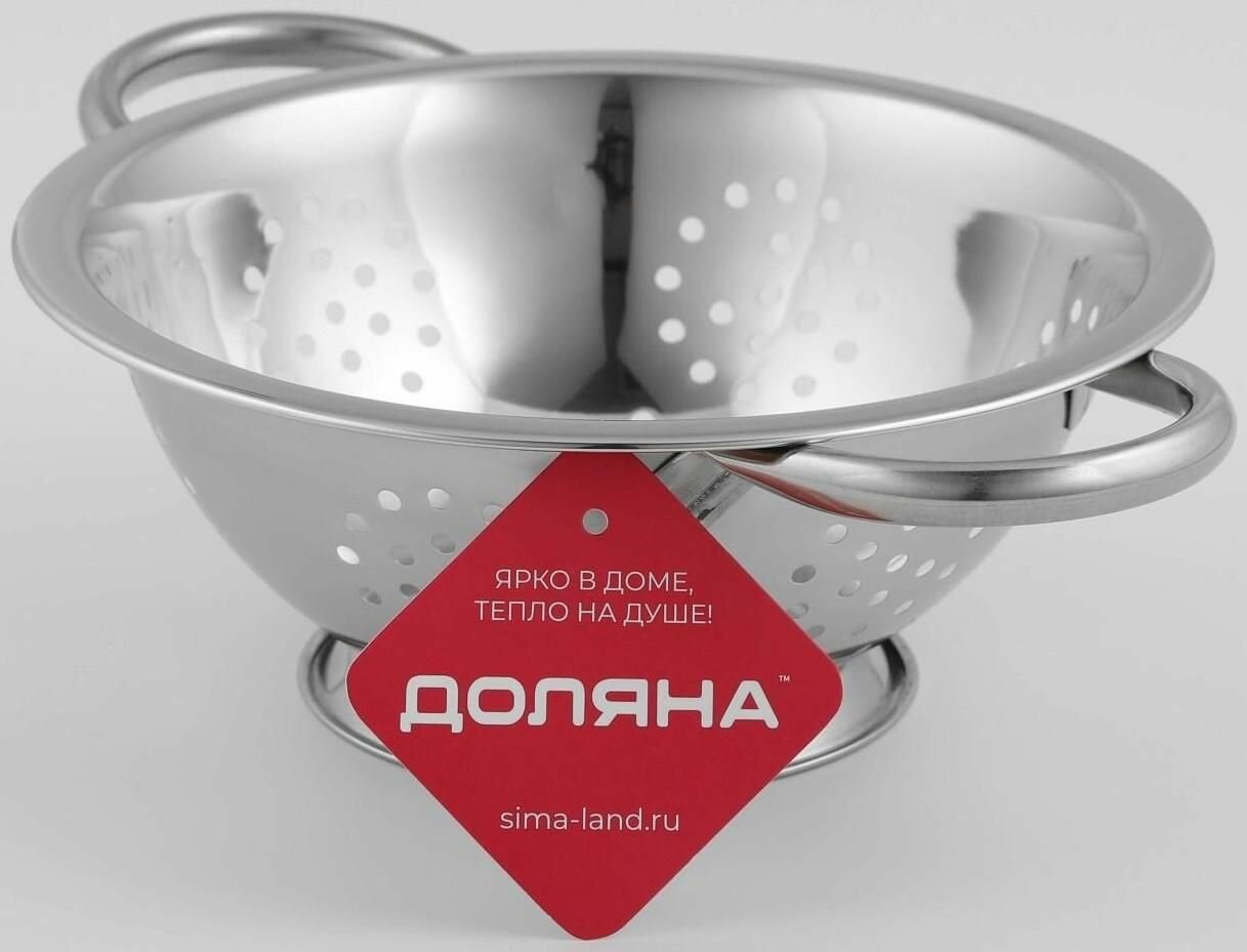 Дуршлаг из нержавеющей стали Доляна «Индия», 1,1 л, d=20 см, на ножке, две ручки