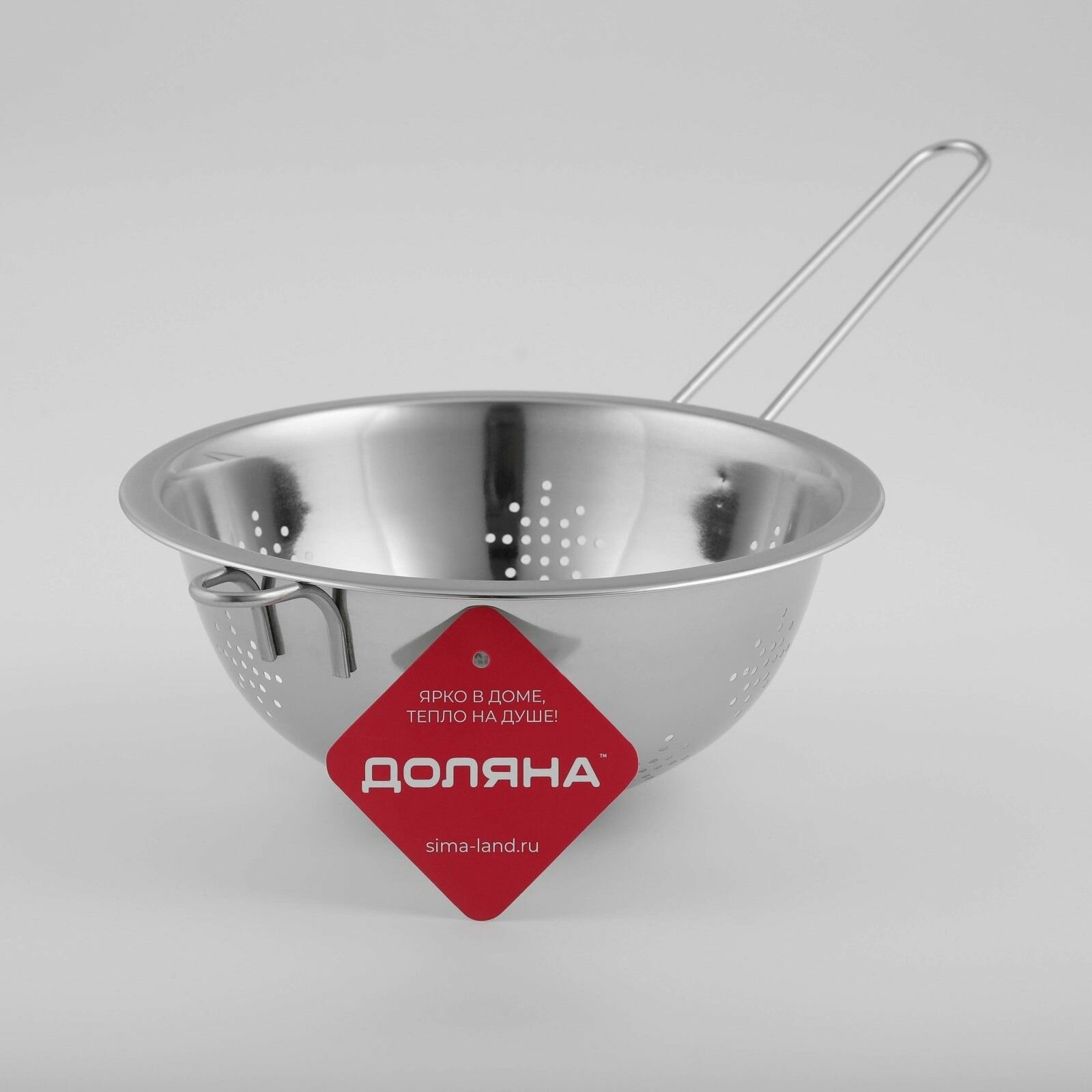 Дуршлаг из нержавеющей стали Доляна, 1,2 л, d=20 см, толщина 0,3 мм, длинная ручка
