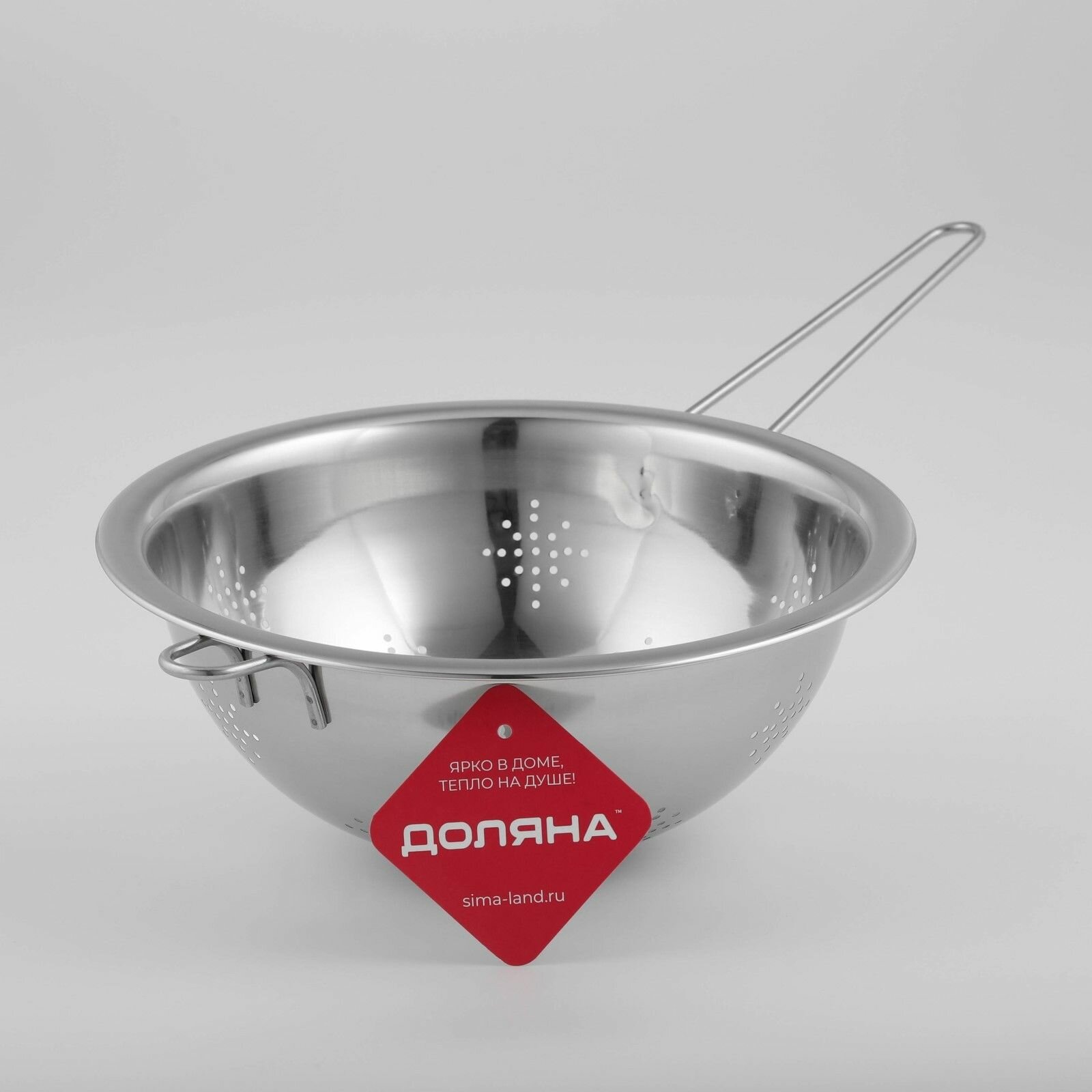 Купить Дуршлаг из нержавеющей стали Доляна Индия , 2 л, d 24 см, длинная ручка