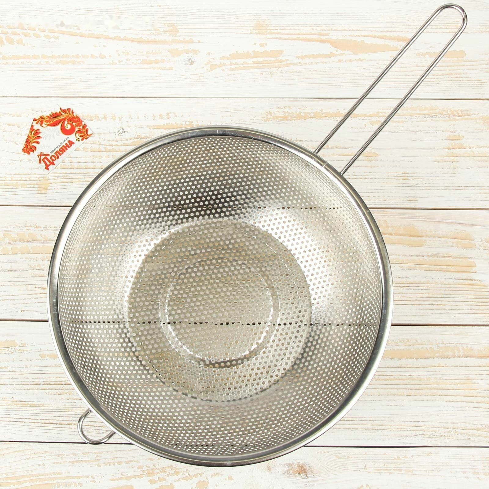 Дуршлаг из нержавеющей стали Доляна, 1,2 л, d=20 см, толщина 0,3 мм, длинная ручка