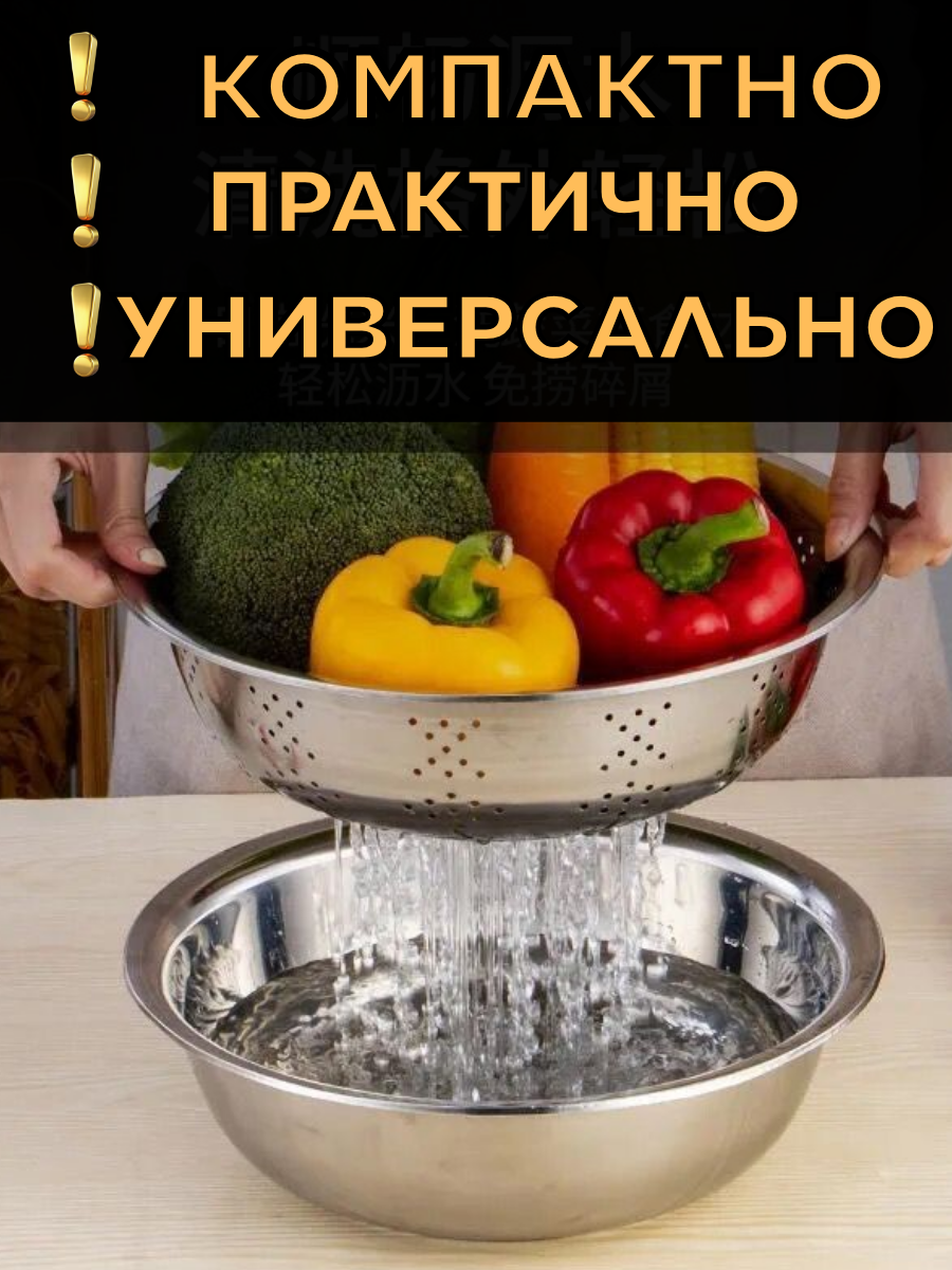 Набор миска, терка и дуршлаг, кухонный набор из нержавеющей стали 3 в1 интересное: