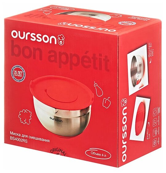 Миска для смешивания Oursson BS4002RS/RD, с крышкой, красная, 24см интересное: