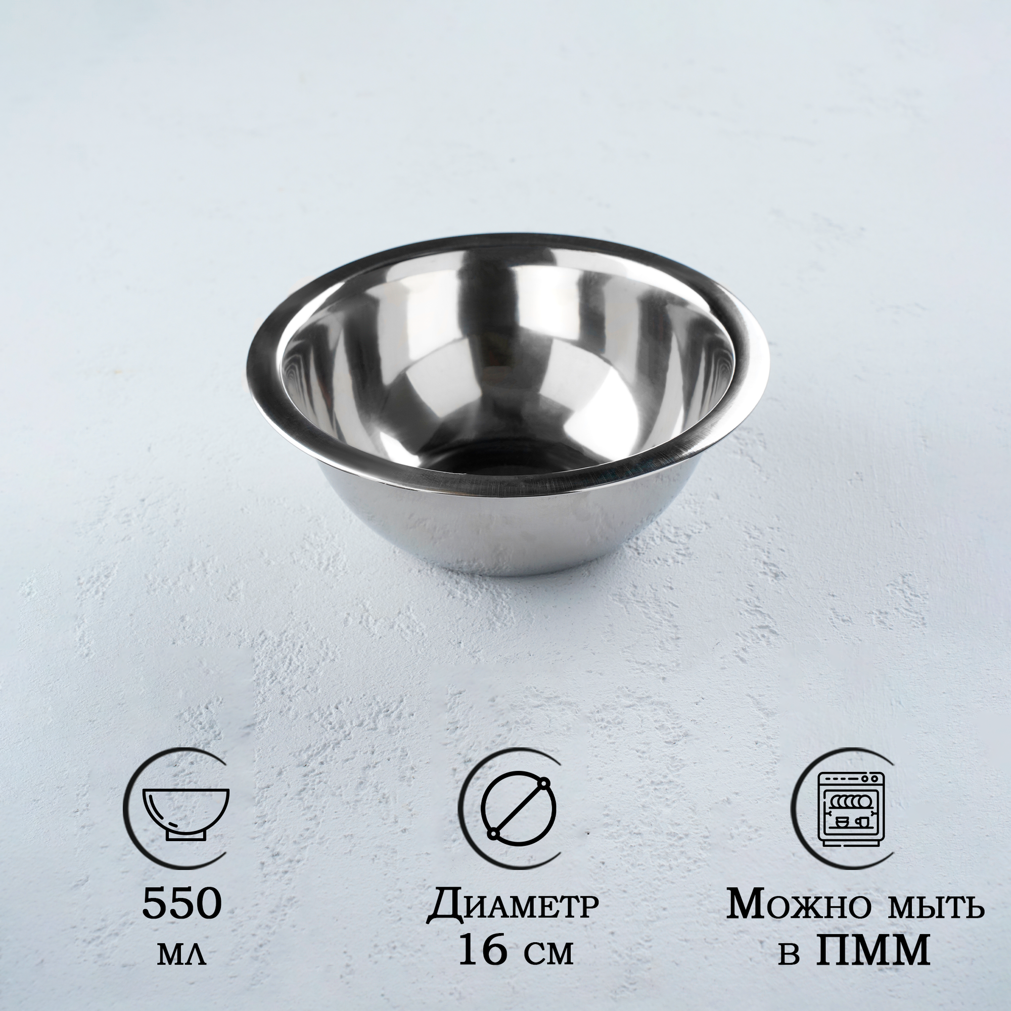Купить Миска глубокая из нержавеющей стали Доляна «Индия», 550 мл, d=16 см