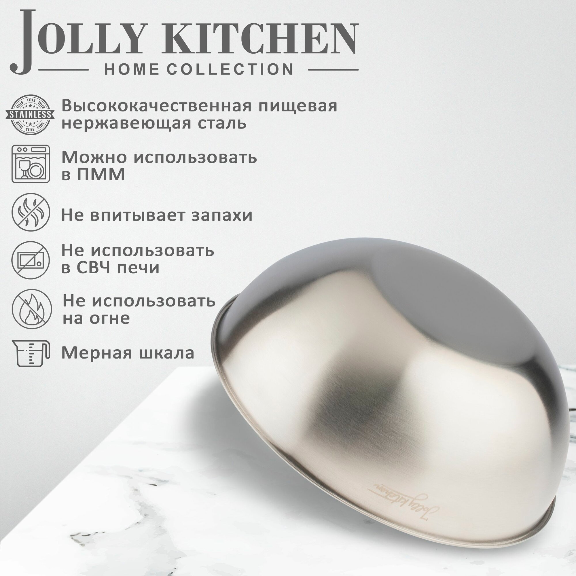 Миска-салатник Jolly Kitchen с мерной шкалой нерж. сталь 19 см интересное: