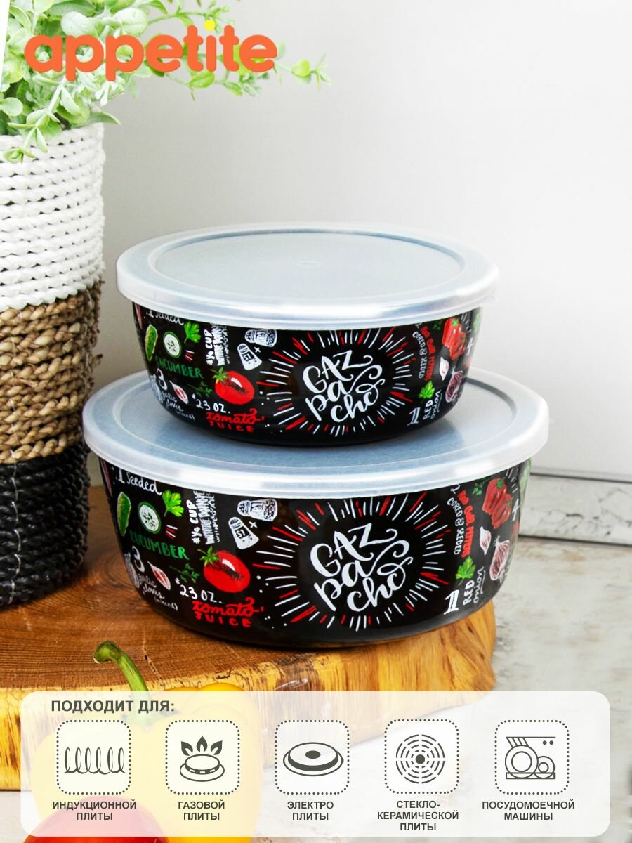 Купить Набор мисок эмалированных 3пр Gazpacho с пластиковыми крышками ТМ Appetite