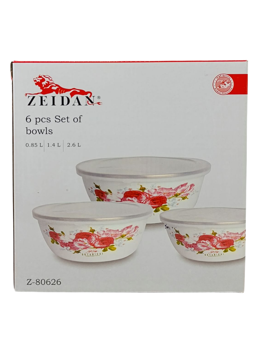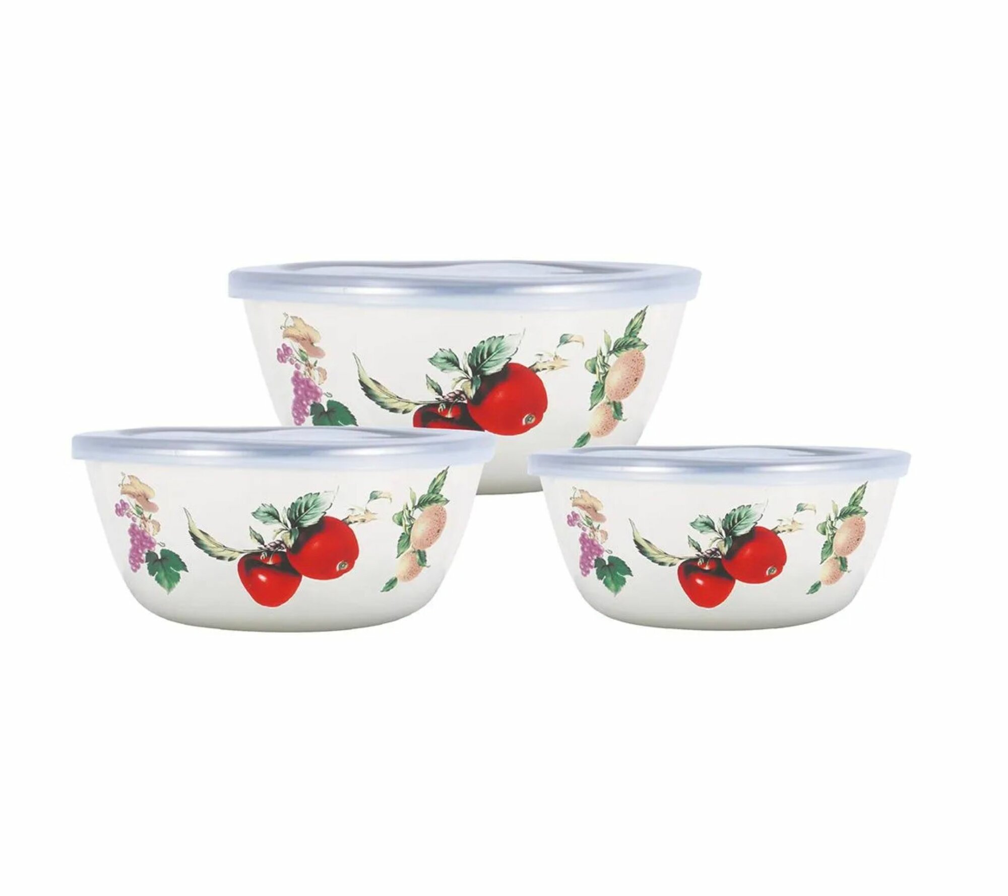 Купить Набор эмалированных мисок салатников Z-80626-03 с крышками 0,85 л, 1.4 л, 2,6 л с внутренним эмалированным покрытием