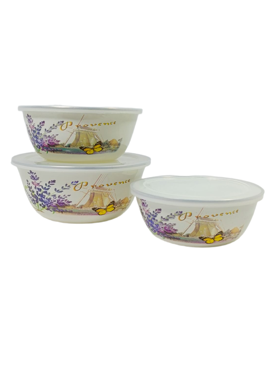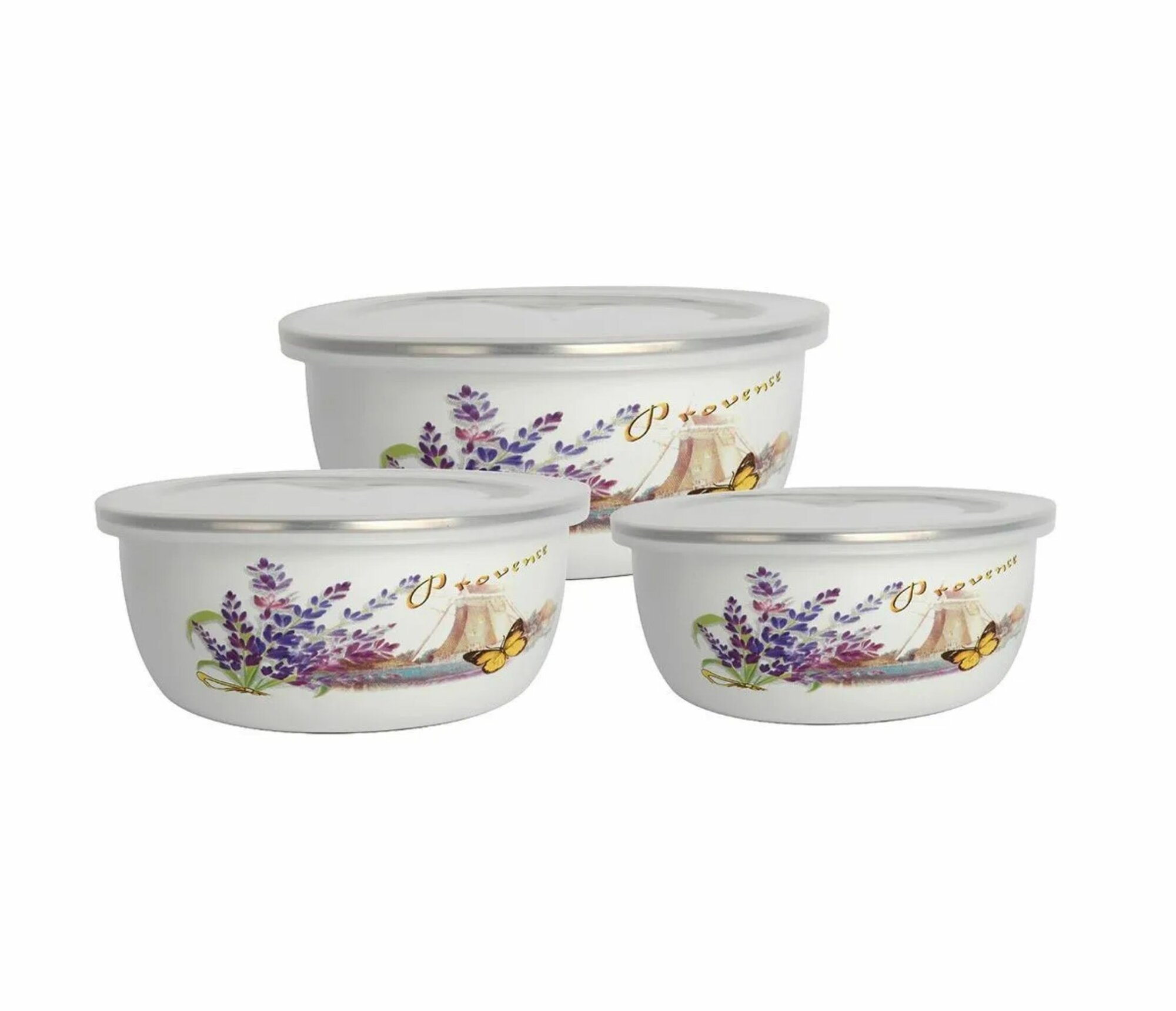 Купить Набор эмалированных мисок салатников Z-80627-03 с крышками 0,85 л, 1.4 л, 2,6 л с внутренним эмалированным покрытием