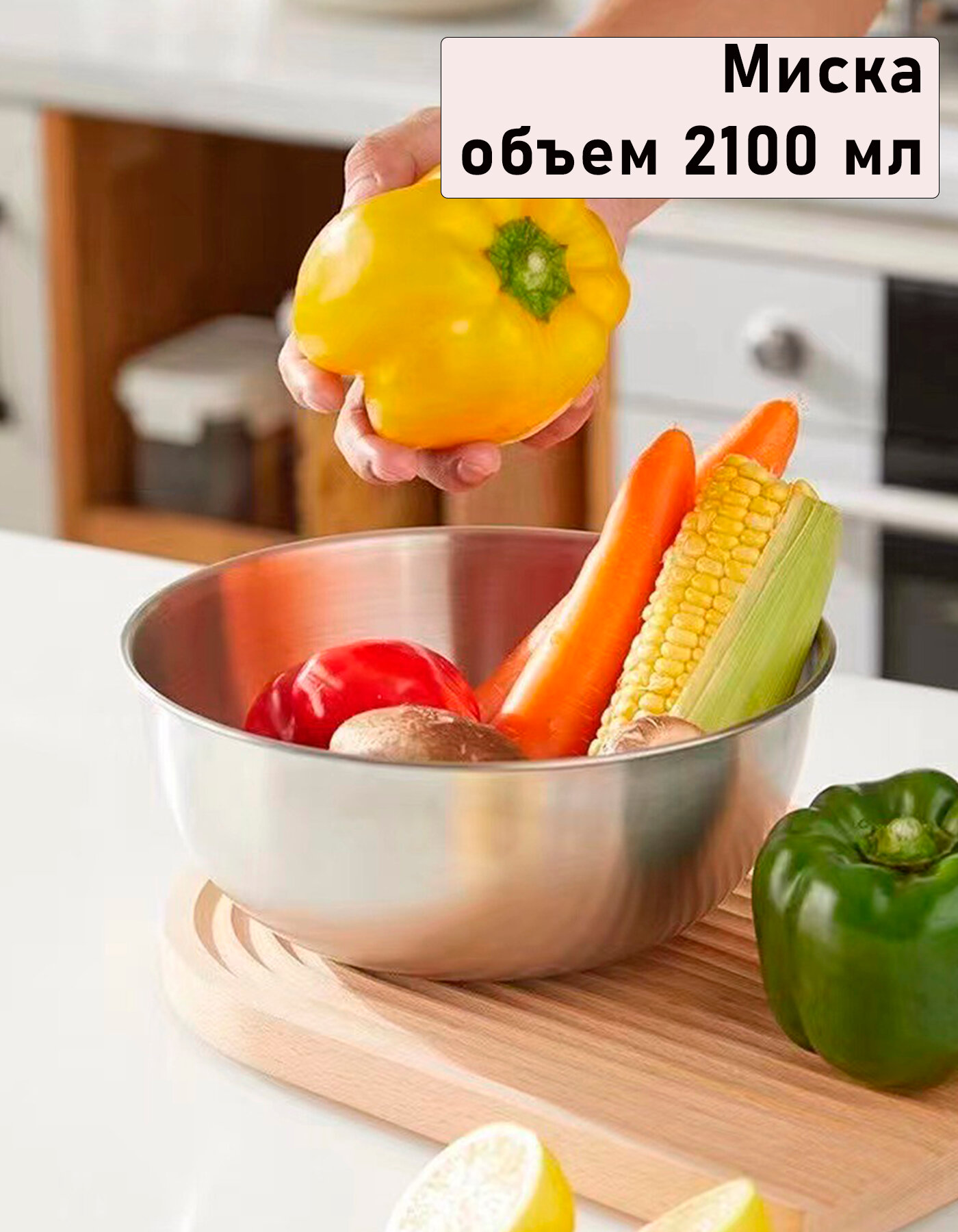 Миска/салатник из нержавеющей стали с серебристым покрытием 2,1 литра интересное: