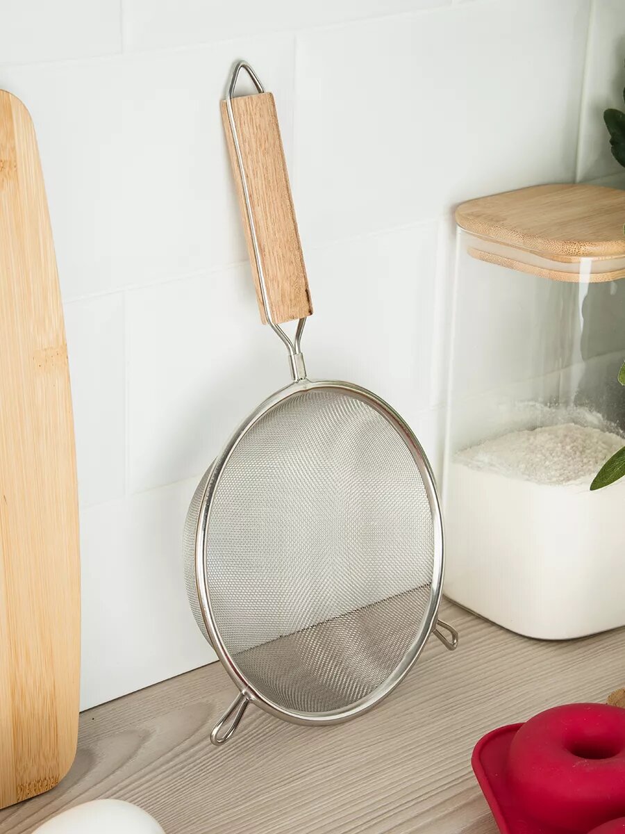 Сито 16 см металлическое мелкое с ручкой для муки дуршлаг интересное: