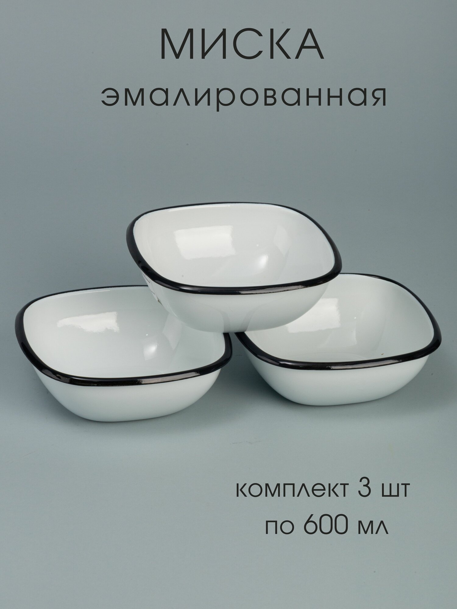 Купить Миска для кухни эмалированная 600 мл без рисунка, чаша, блюдо, комплект 3 шт.