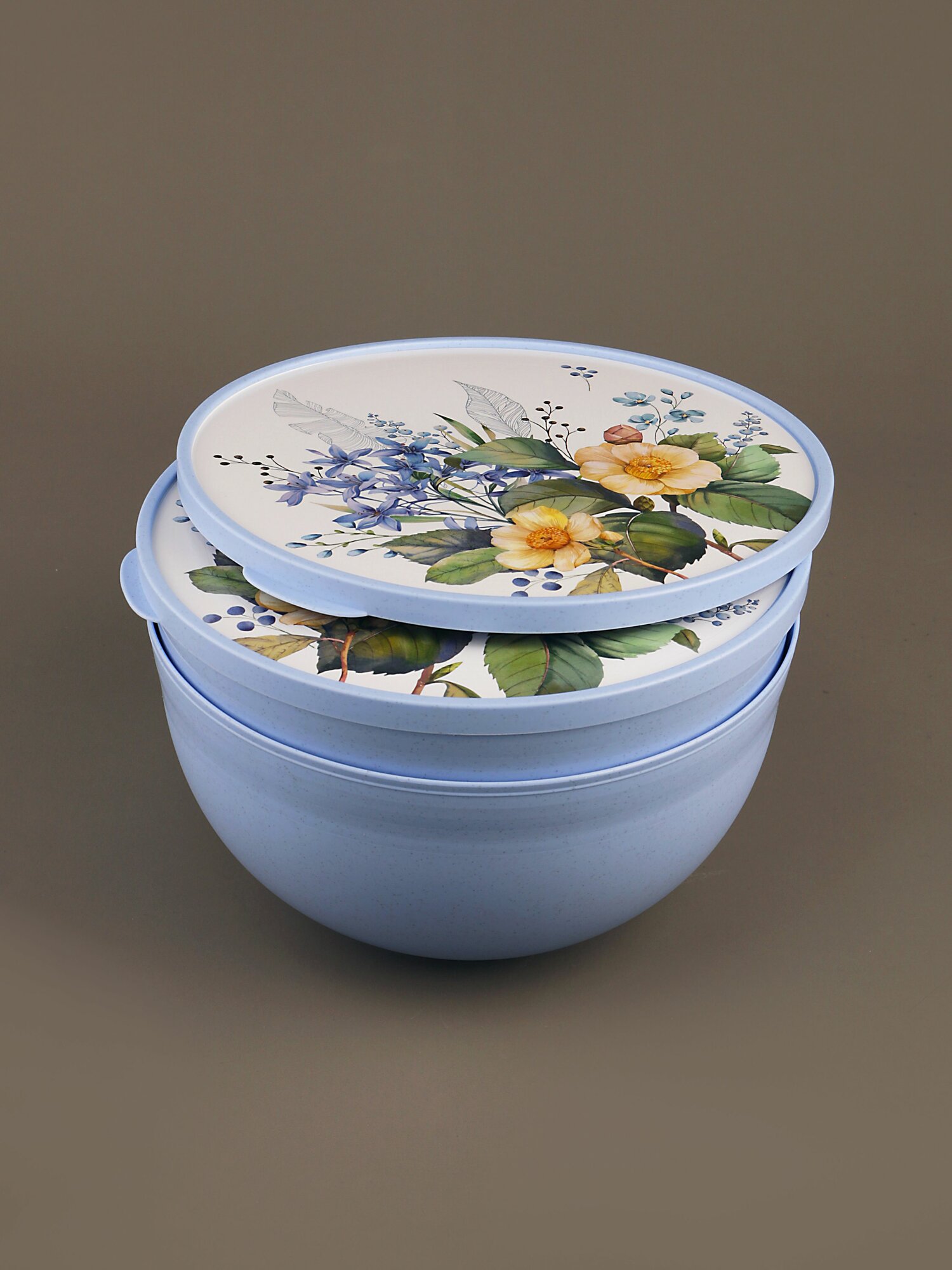 Миска пластиковая с крышкой 3 л Цветущий сад (комплект из 3 шт)