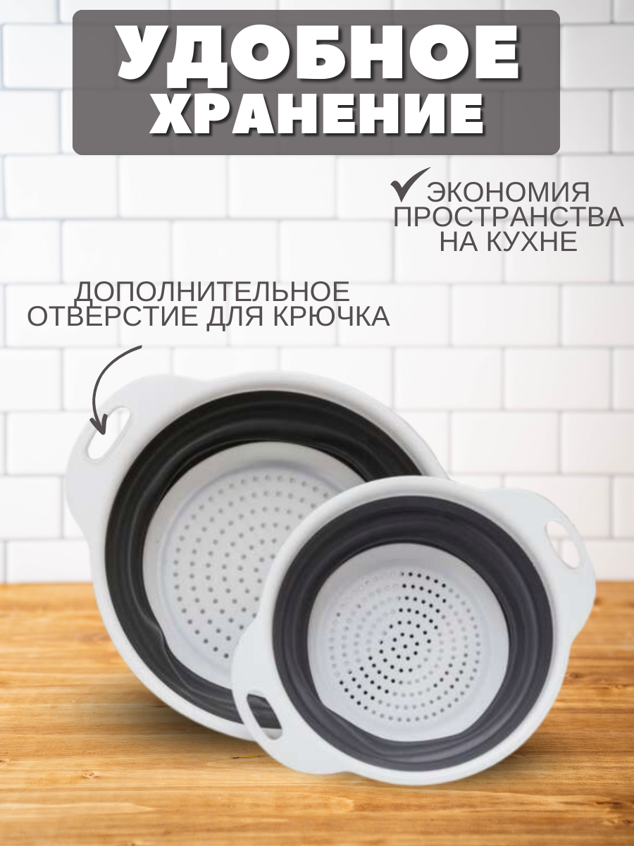 Дуршлаг складной для макарон круп риса силиконовый c ручками 1.3 л круглый маленький интересное: