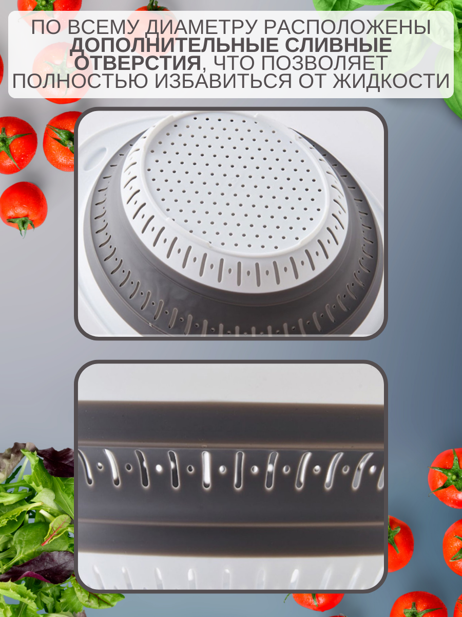 Дуршлаг для макарон складной пластиковый для промывки 2.8 л