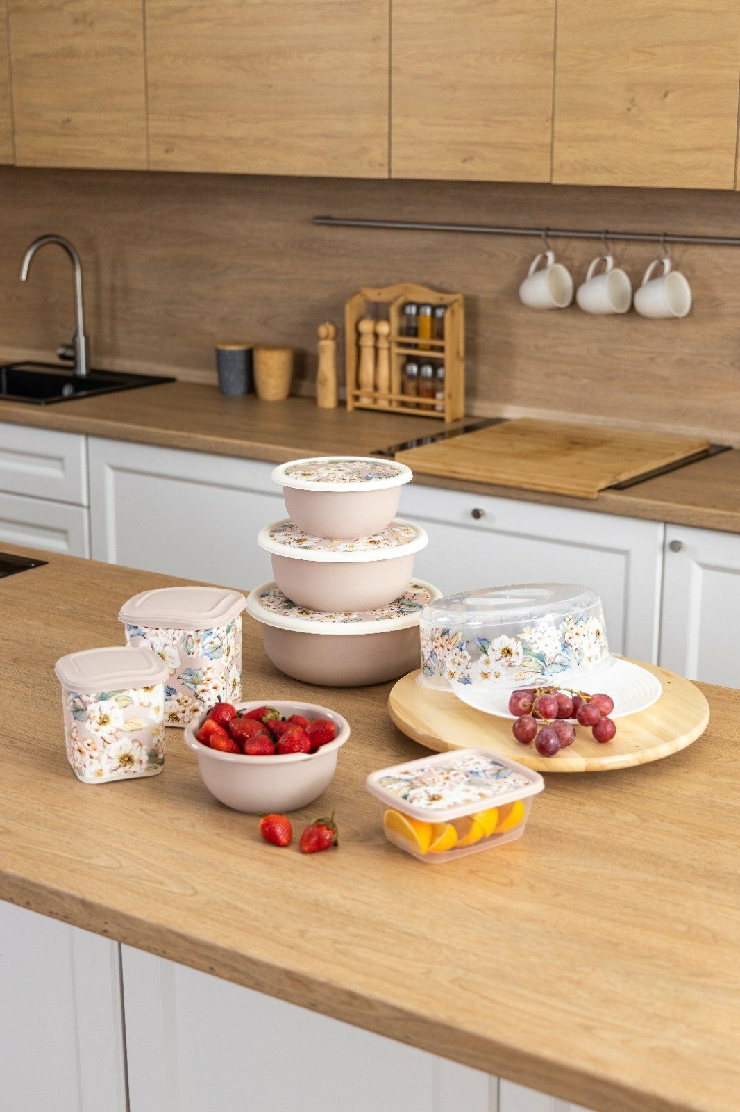 Набор мисок 3 штуки (1,2 л + 2,1 л + 3,2 л) ULMI plastic с декоративными крышками, бежевые интересное:
