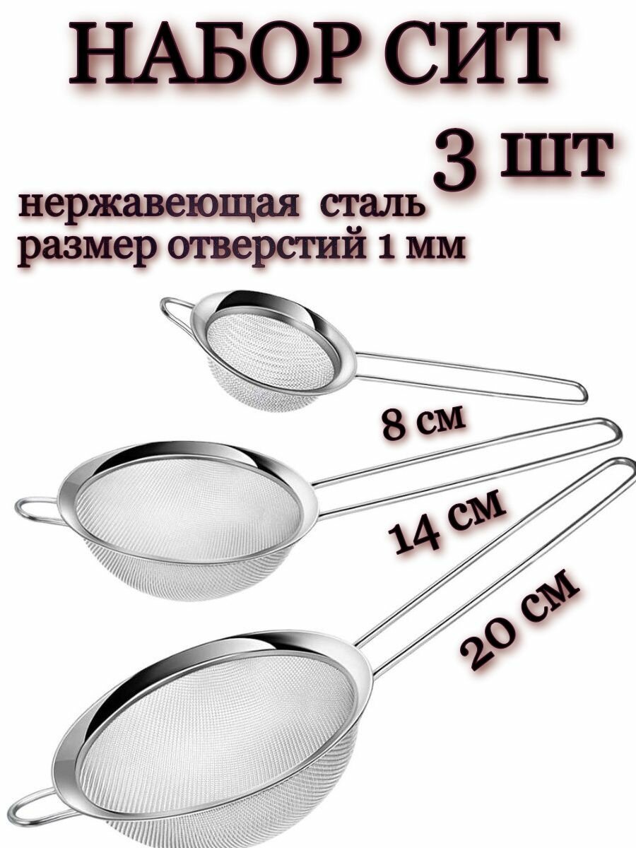 Ниже Вы можете прочитать отзывы на Набор сит кухонных 3шт. Сито металлическое, ознакомится с подробными характеристиками, посмотреть интересные обзоры и фотографии на Набор сит кухонных 3шт. Сито металлическое.