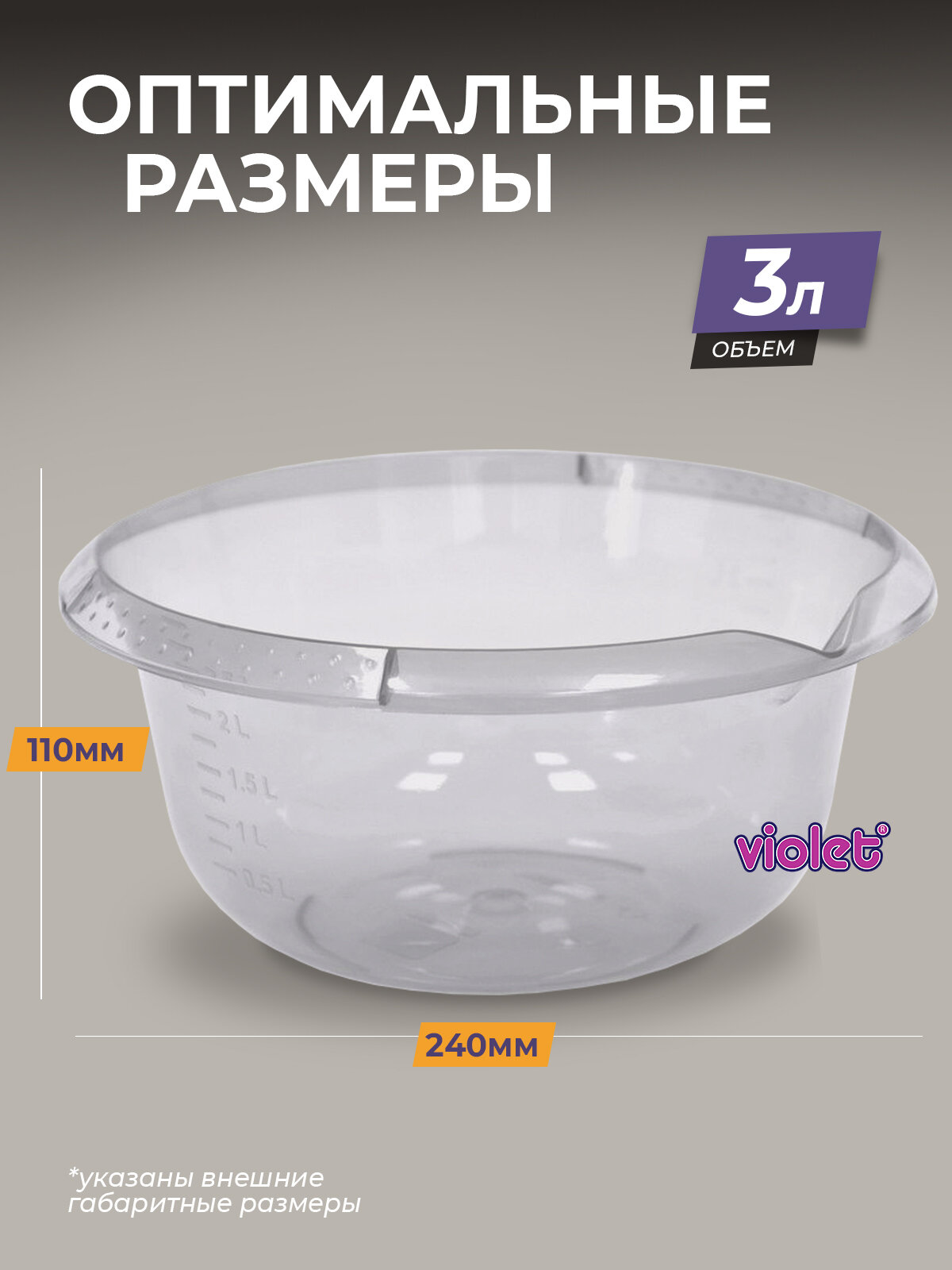 Набор из 7 предметов: Миски с мерным делением 2л - 2шт, 3л - 2шт, 4л - 2шт, цвет прозрачный, стакан Поварёнок 0,5л интересное: