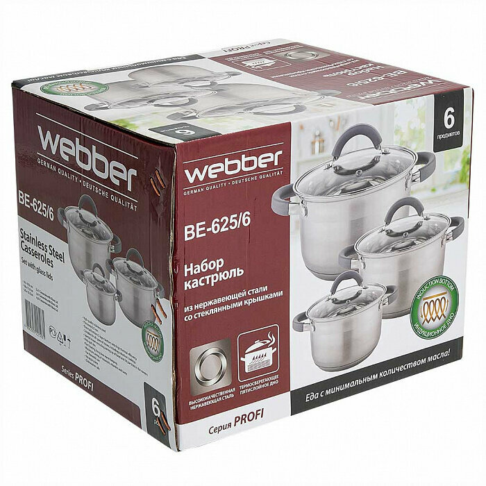 Набор кастрюль Webber BE-625/6 из нержавеющей стали со стеклянными крышками, 6 предметов интересное: