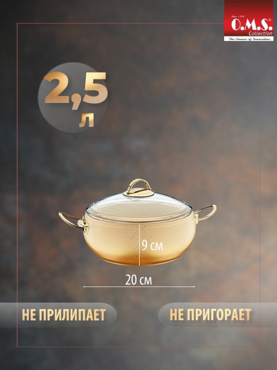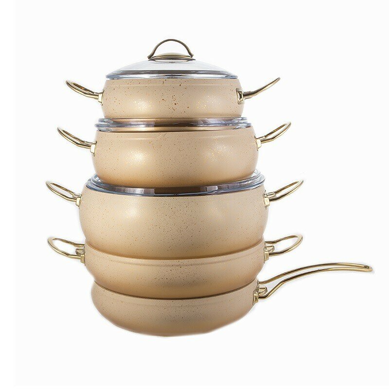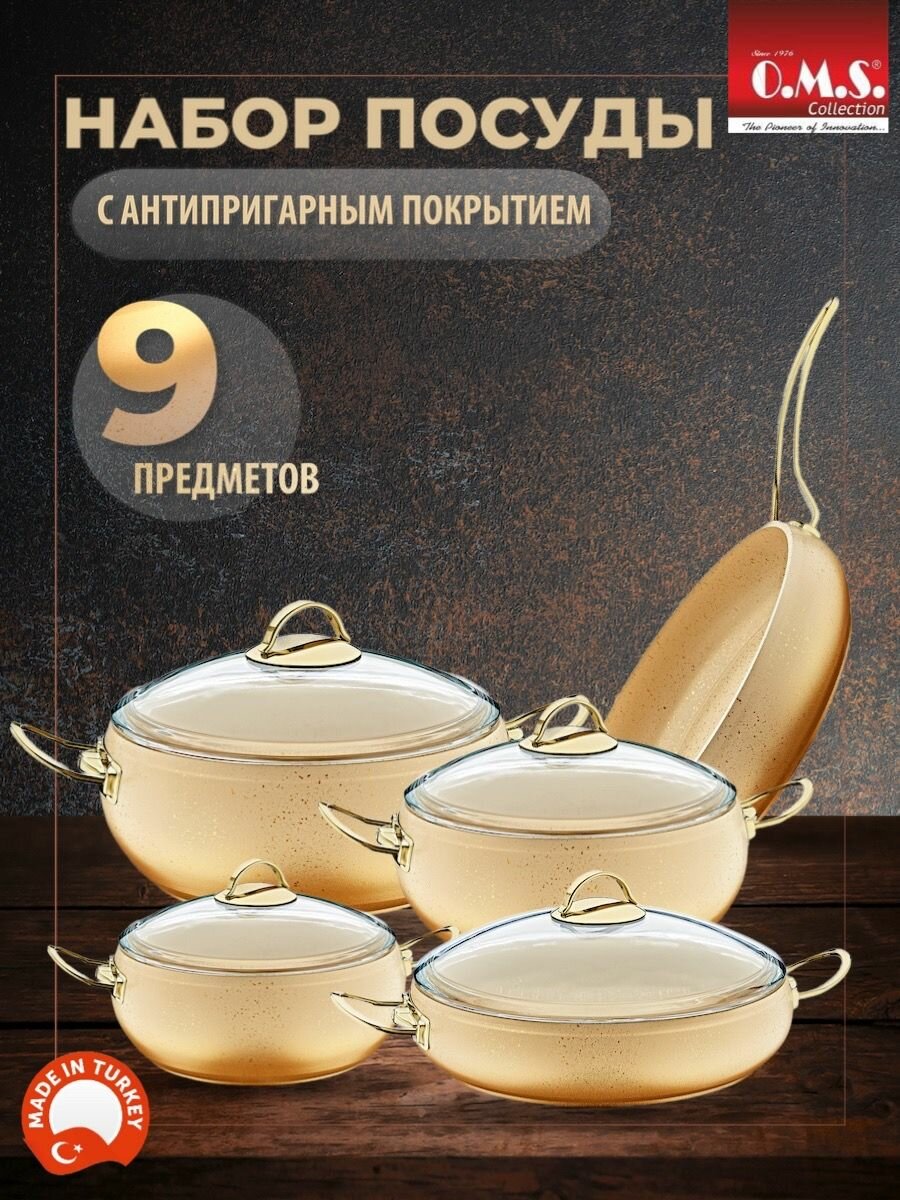 Набор посуды O.M.S Collection, 9 предметов, антипригарное покрытие, золотисто-черные