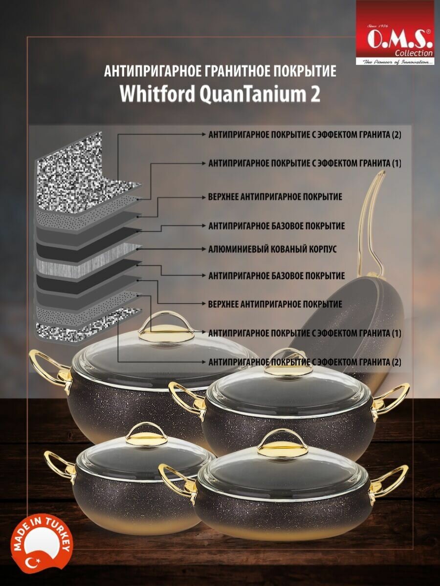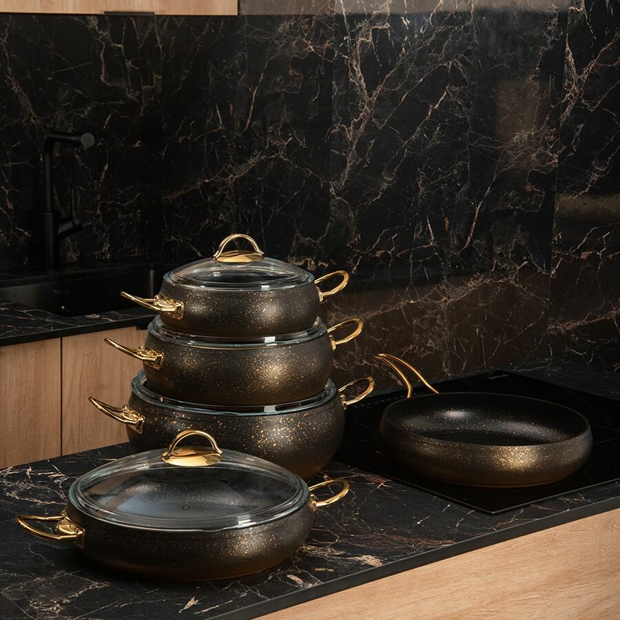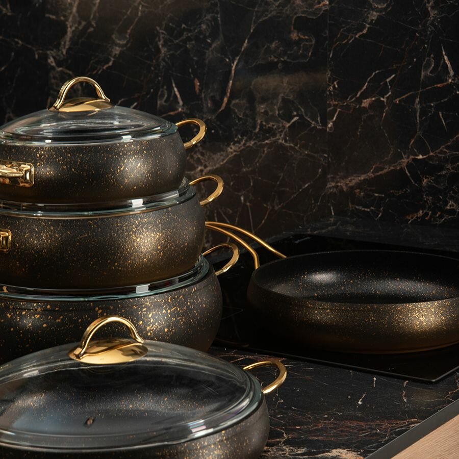 Набор посуды O.M.S Collection, 9 предметов, антипригарное покрытие, золотисто-черные интересное: