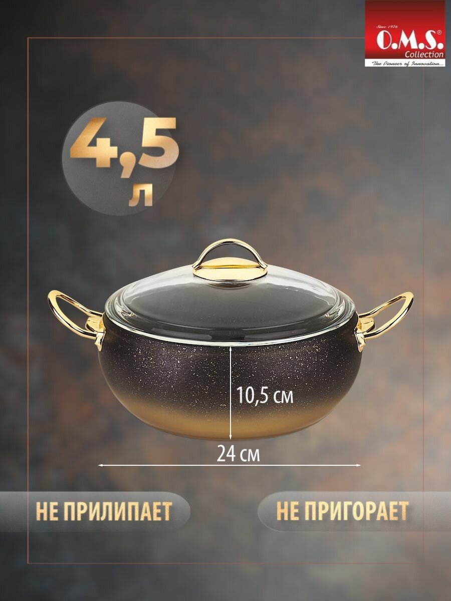 Купить Набор посуды O.M.S Collection, 9 предметов, антипригарное покрытие, золотисто-черные