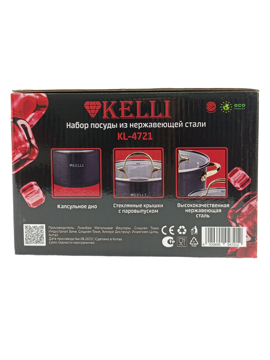 Набор кастрюль с крышками Kelli из нержавеющей стали 2,1 3 и 4 литра