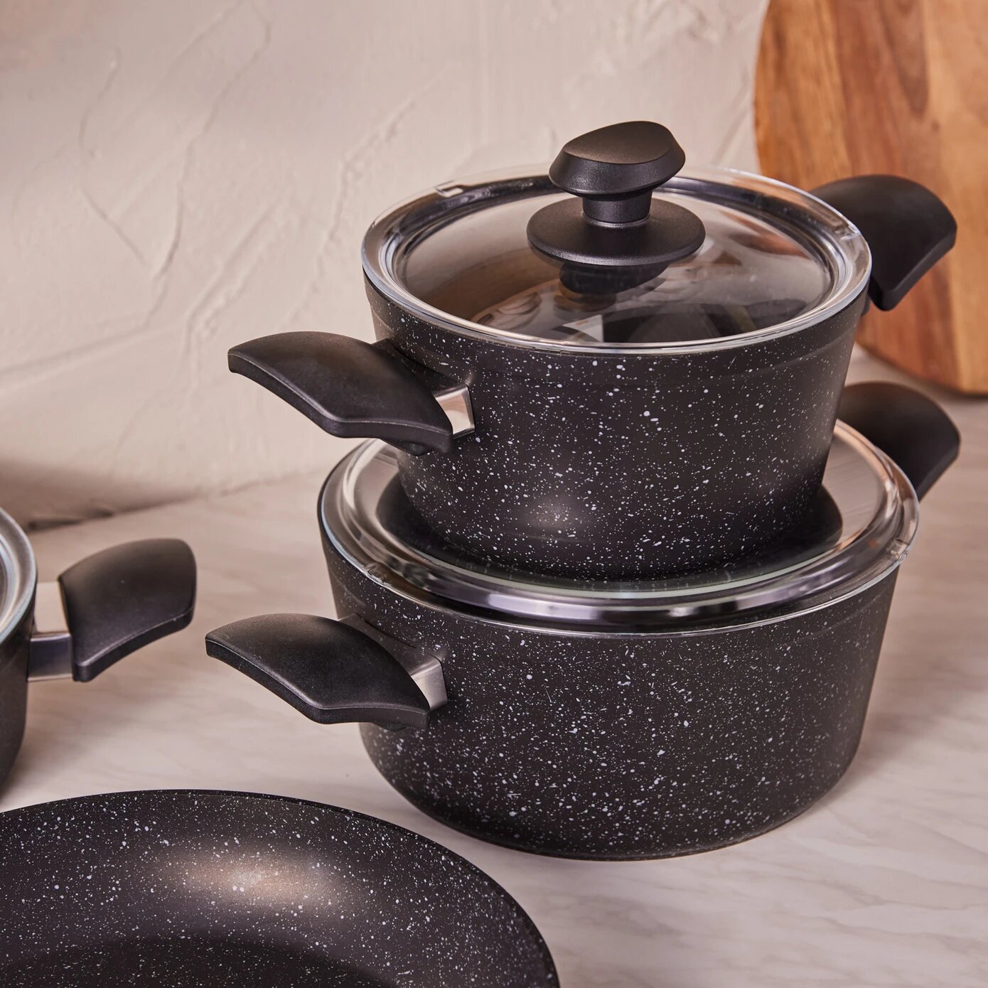 Купить Набор посуды KARACA Defne, искусственный гранит, 7 предметов, черный