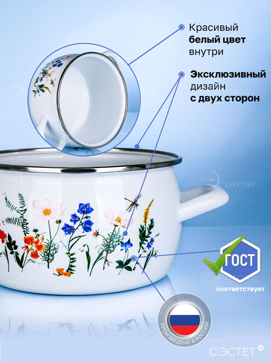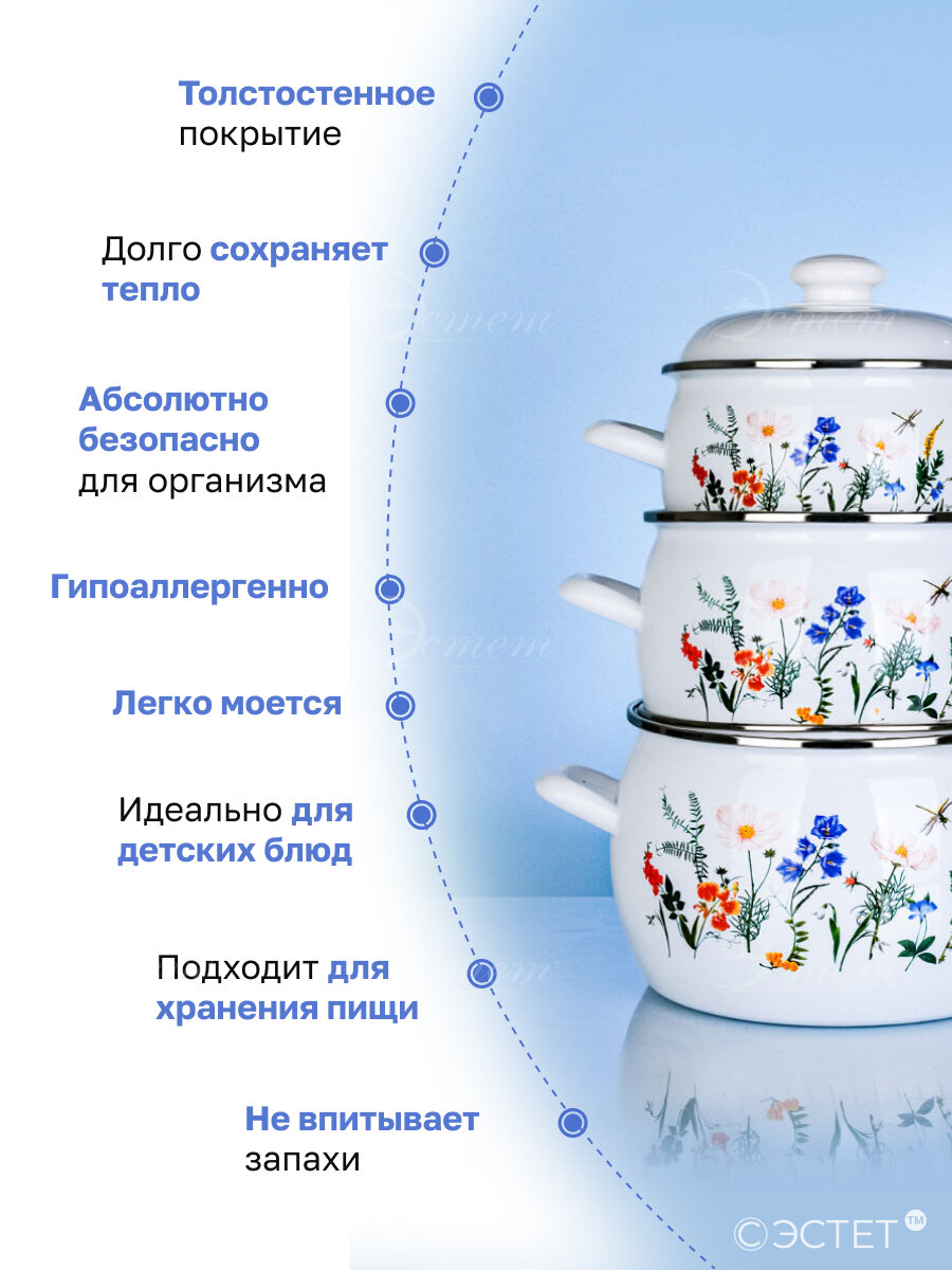 Кастрюля эмалированная с крышкой набор из 3-х 2,0 , 3,5 и 5,0 литра интересное: