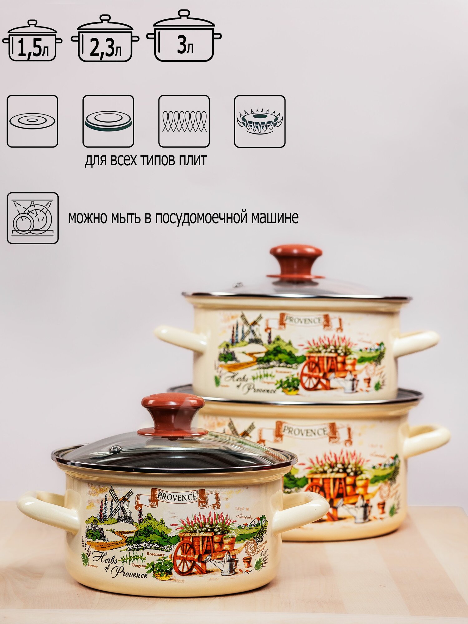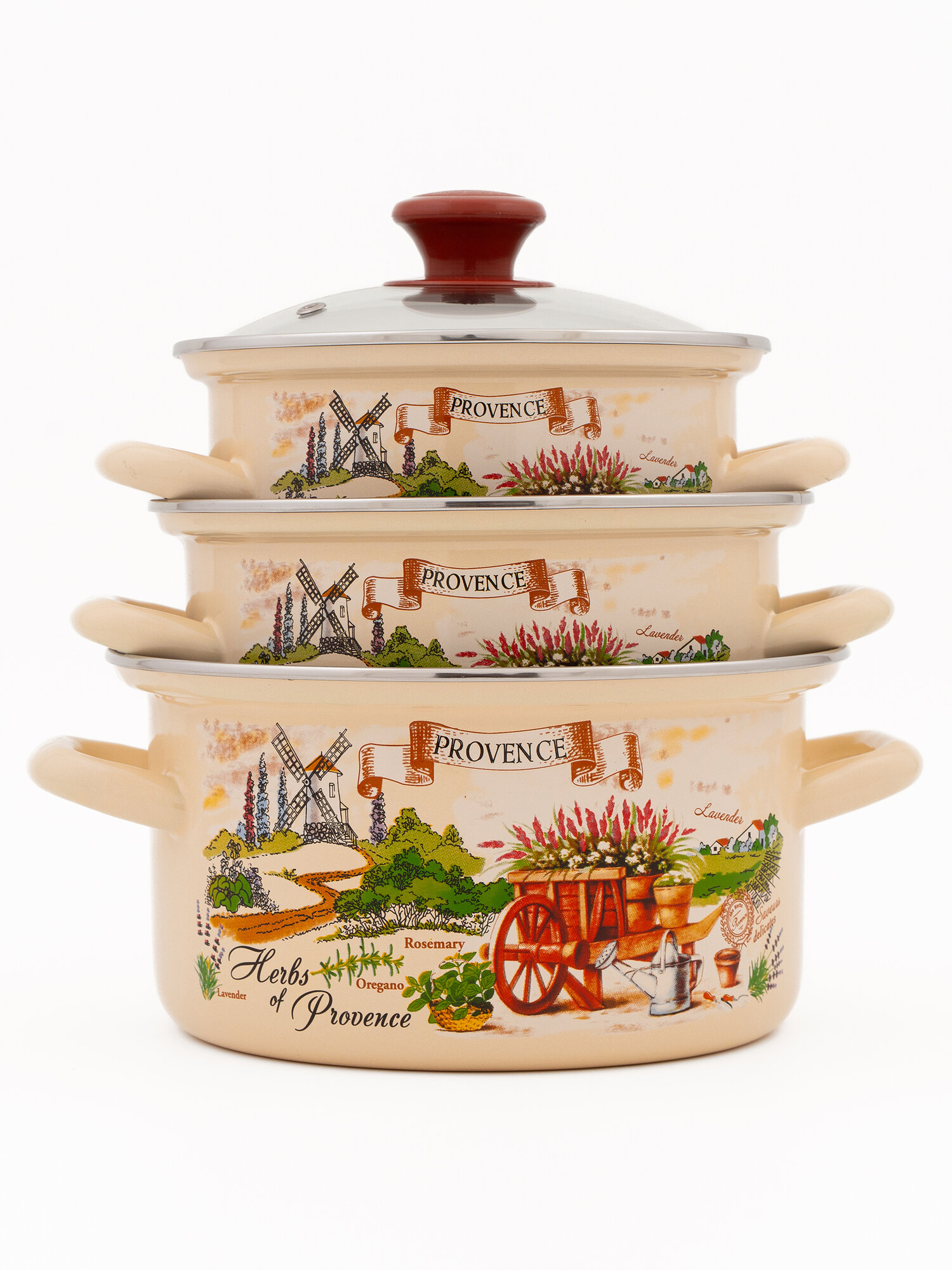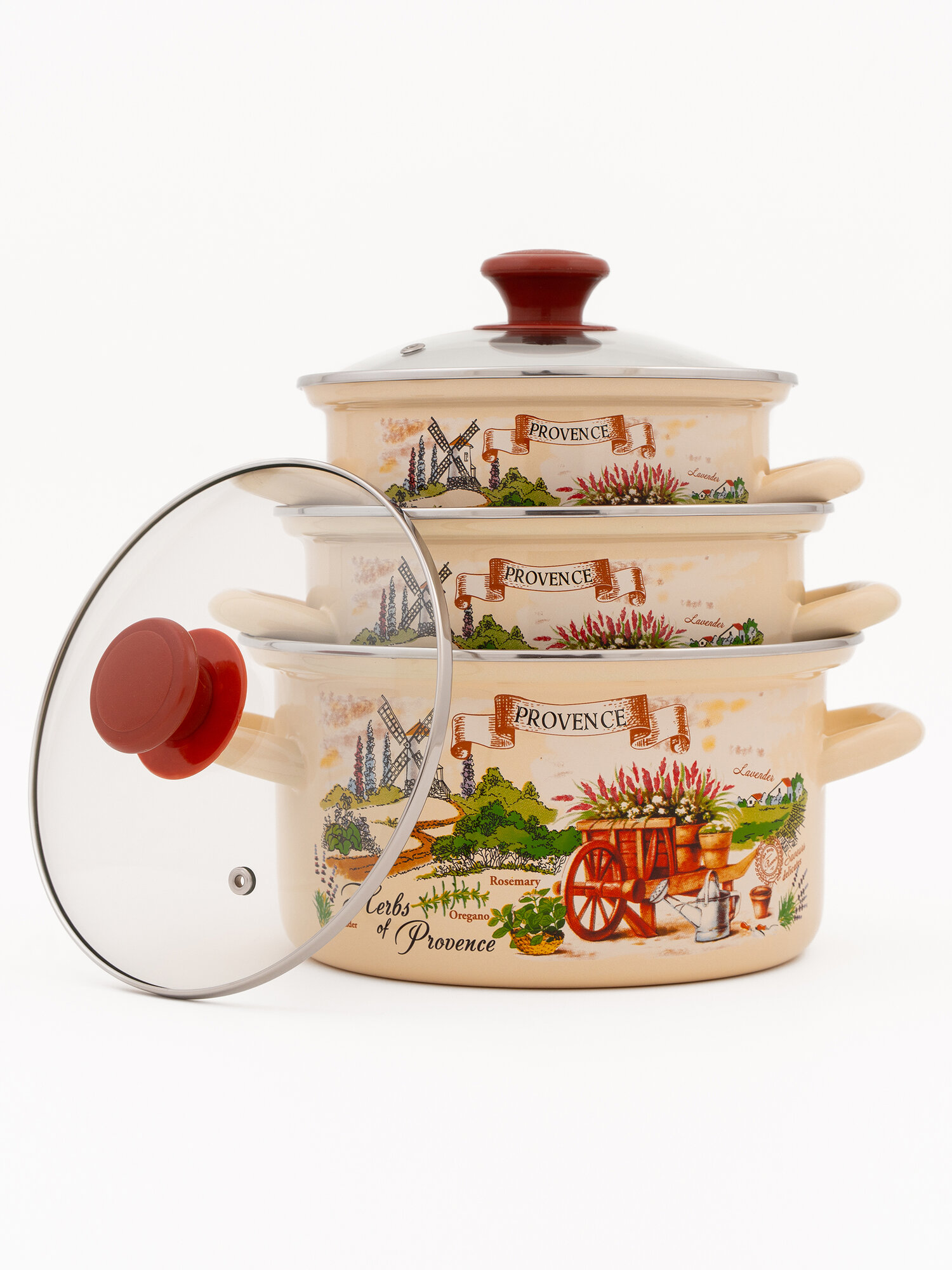 Набор кастрюль с крышками эмалированных 3 шт "Травы Прованса-1-Экстра" интересное: