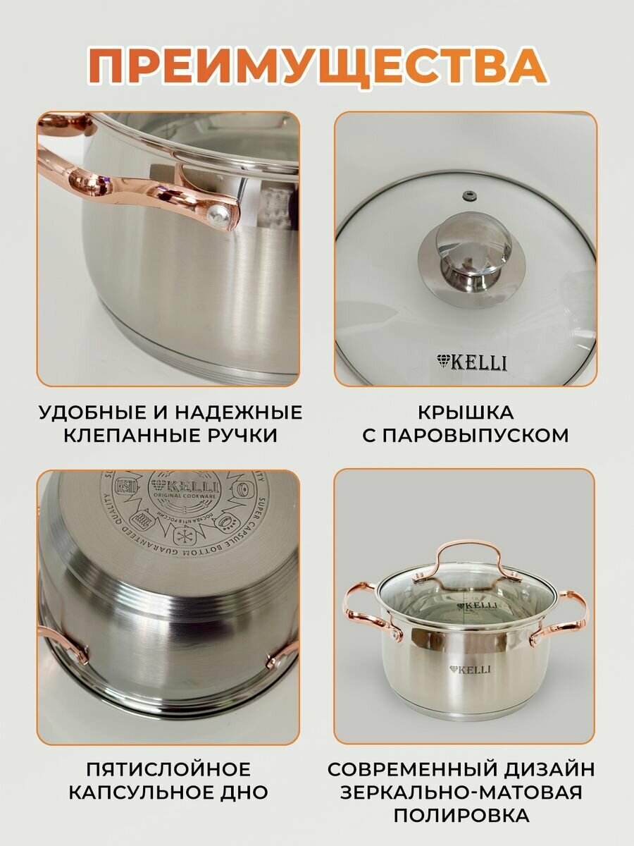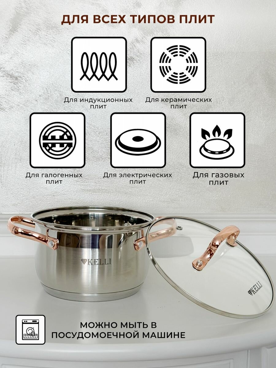 Набор кастрюль техно-вилка KELLI, KL-4214, с крышками, 3 шт, серебристый интересное: